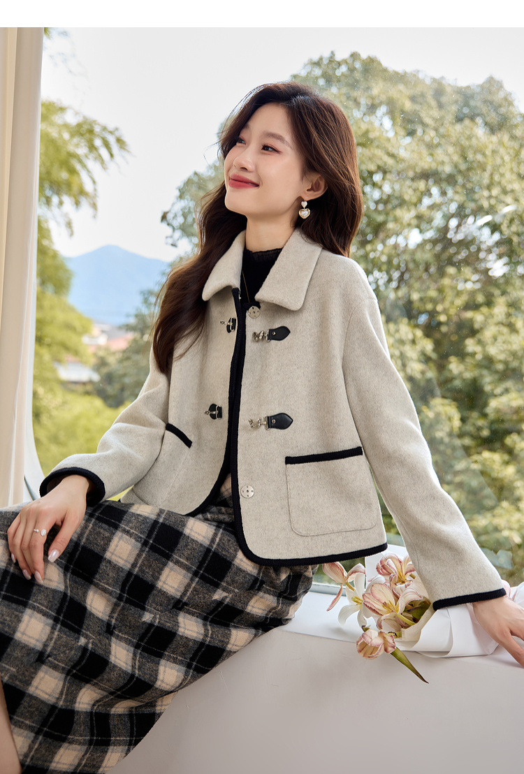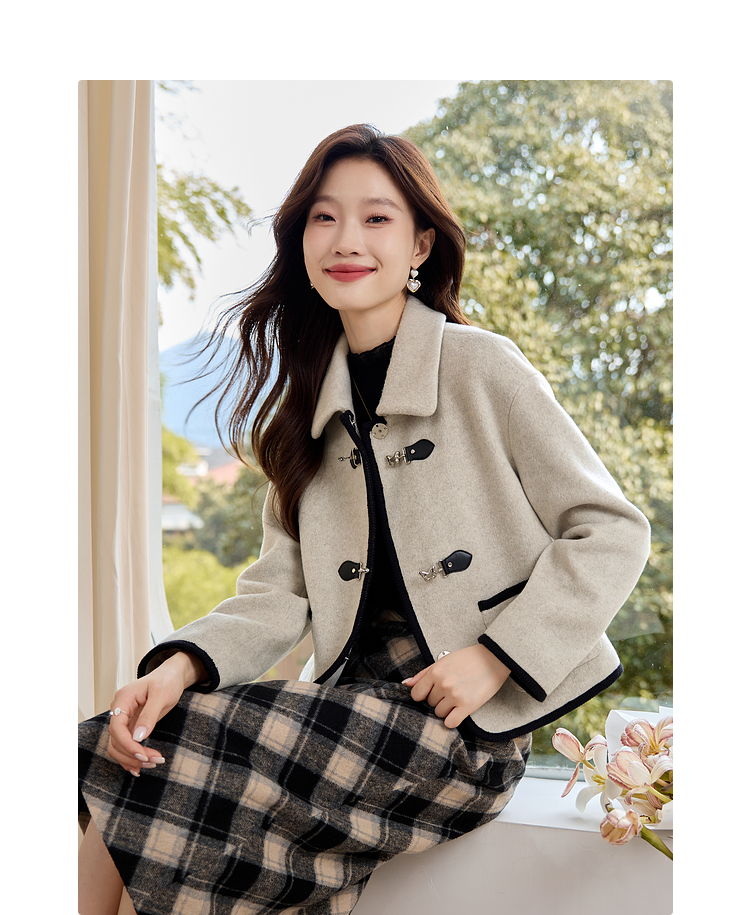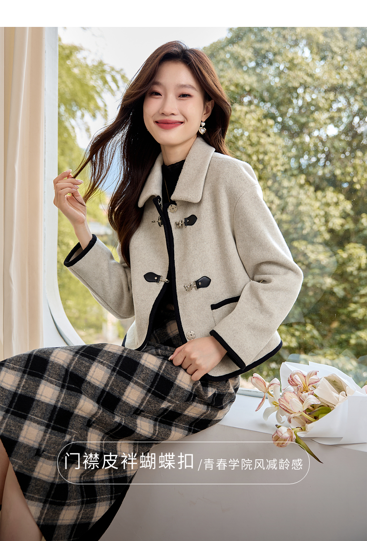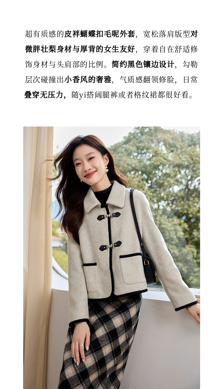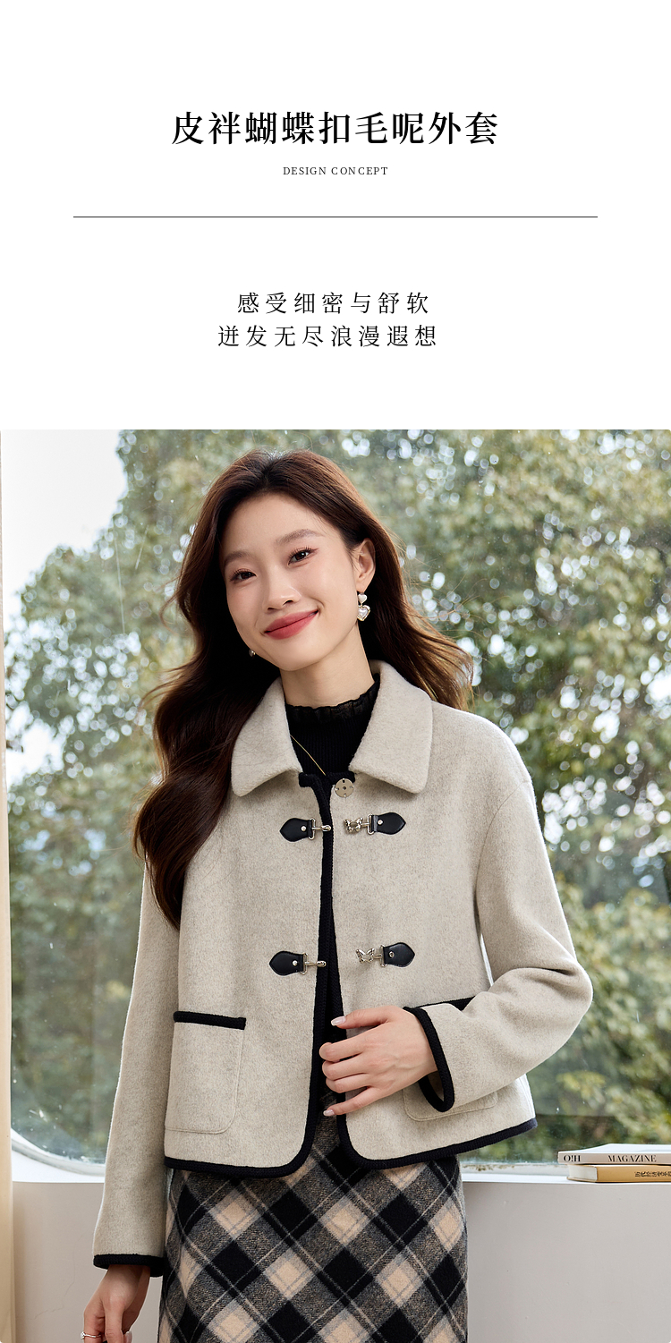 【年终特卖】熙世界小香风毛呢短款外套2025冬装新款法式翻领呢子上衣小个子