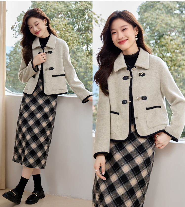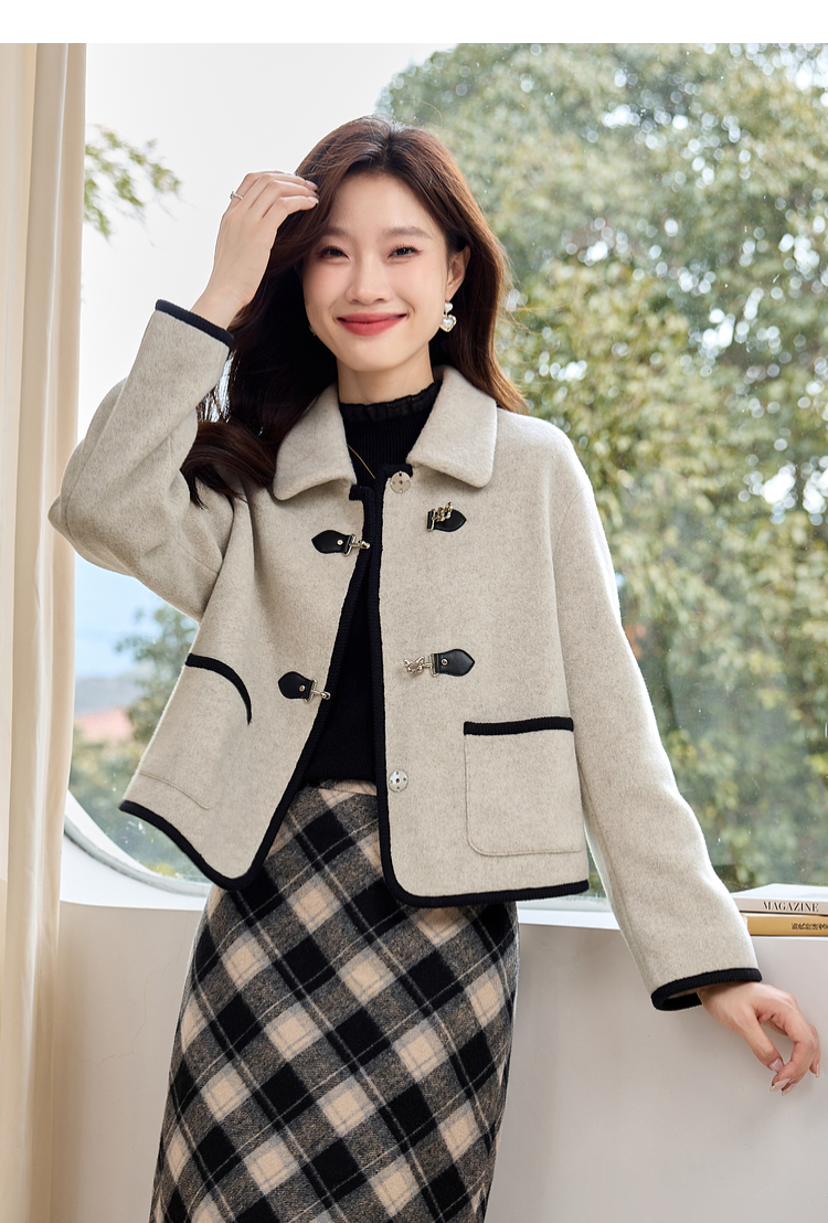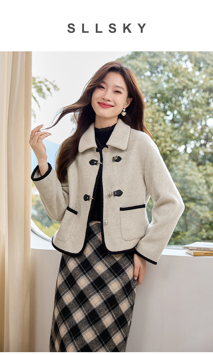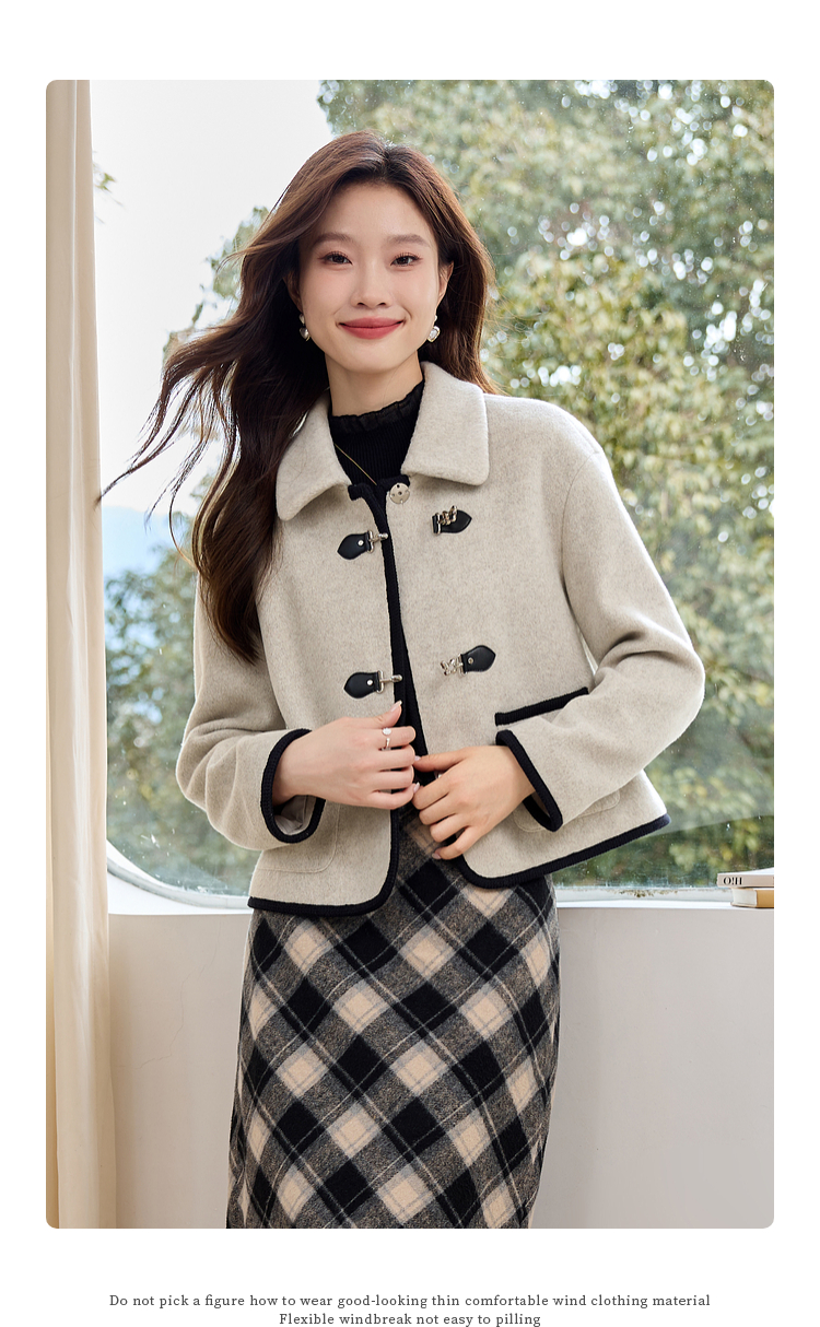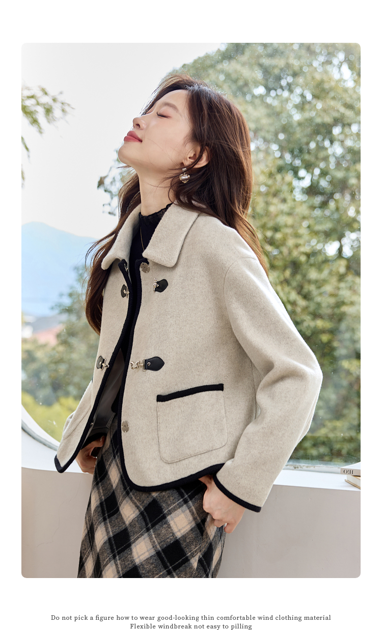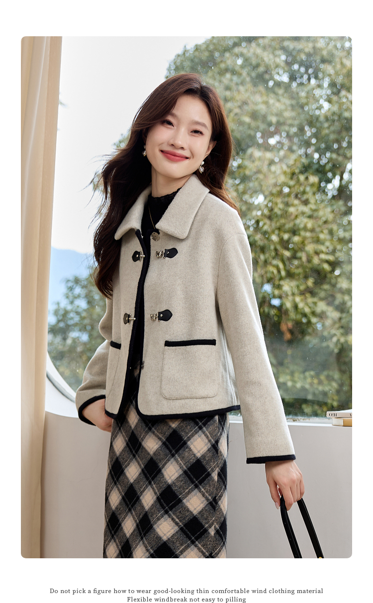 【年终特卖】熙世界小香风毛呢短款外套2025冬装新款法式翻领呢子上衣小个子