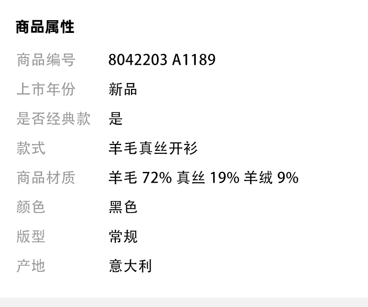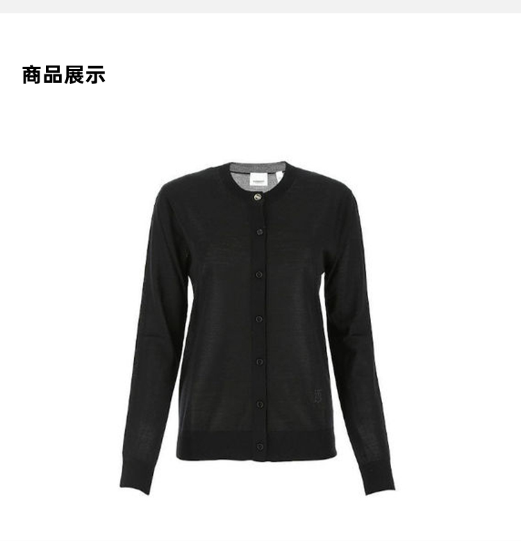 BURBERRY 博柏利 TB专属标识丝毛羊绒混纺开衫 女士针织开衫 黑色 8042203 A1189