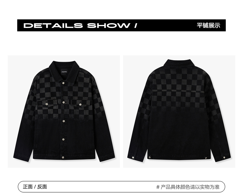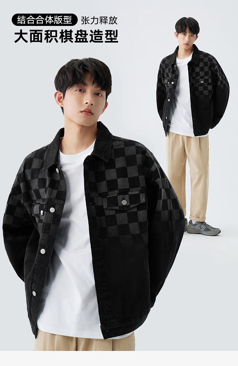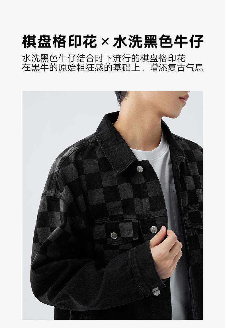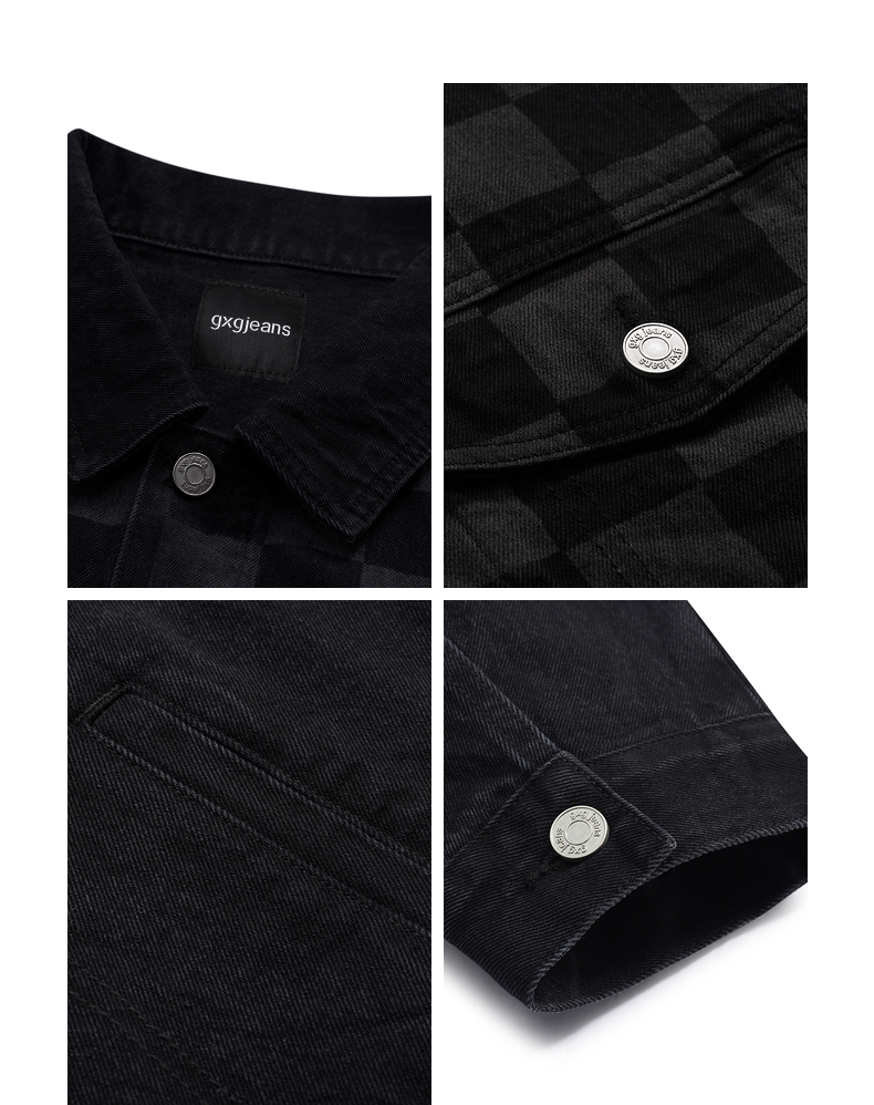 gxgjeans男装春季黑色翻领夹克外套 棋盘格牛仔夹克外套男情侣装JED1E805803