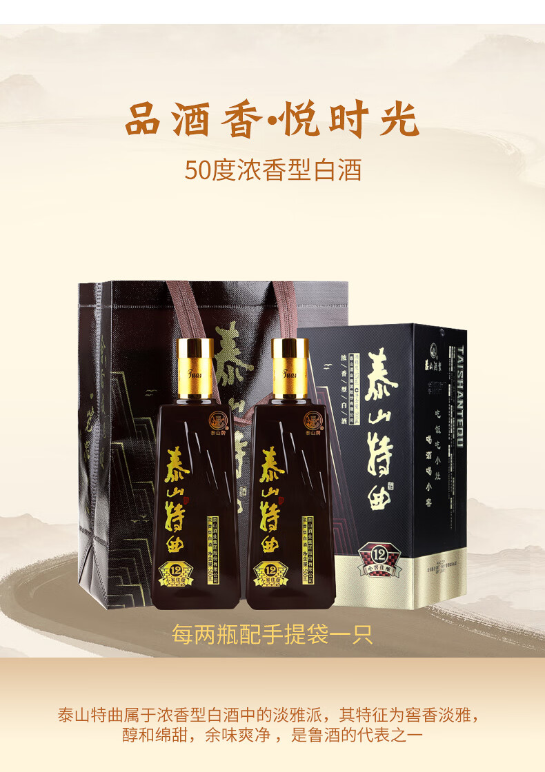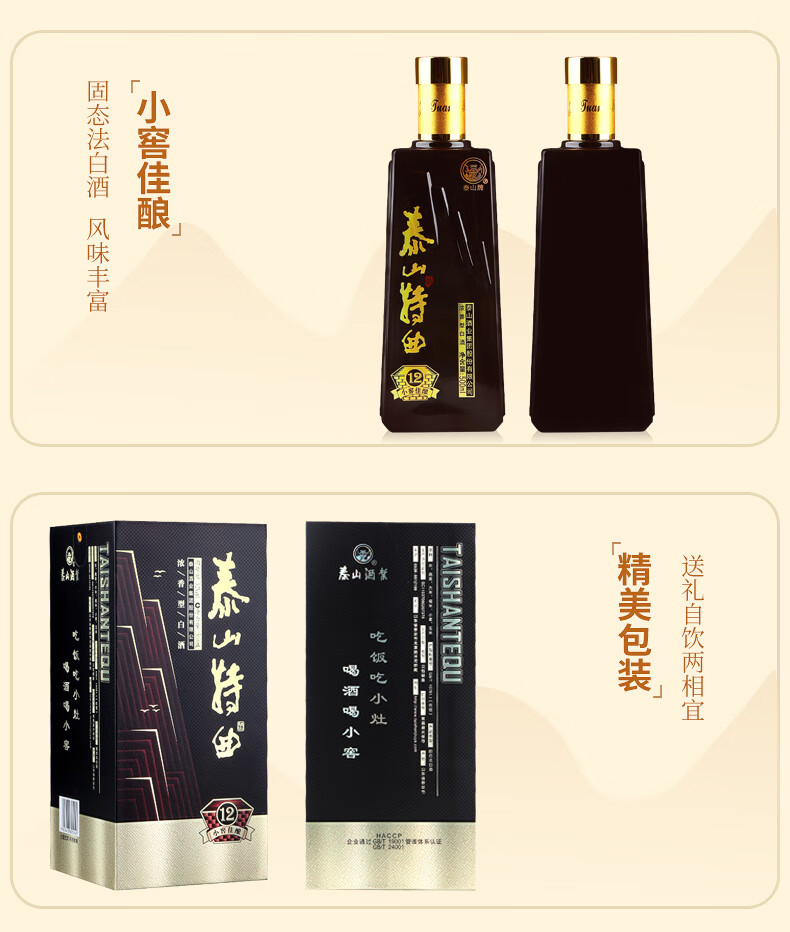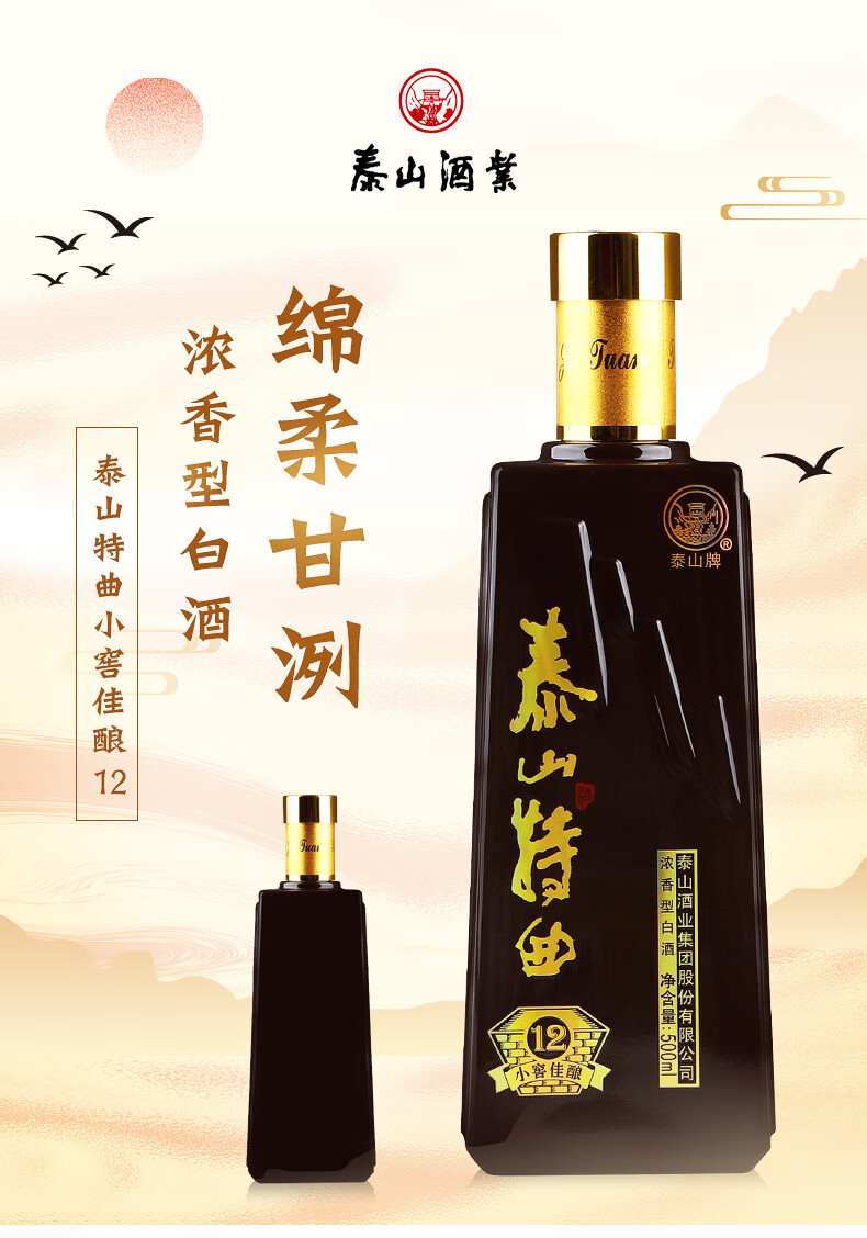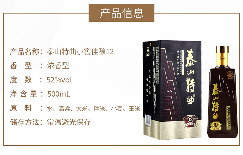 泰山特曲 小窖佳酿12 浓香型白酒 52度500ml*1瓶/2瓶/6瓶整箱