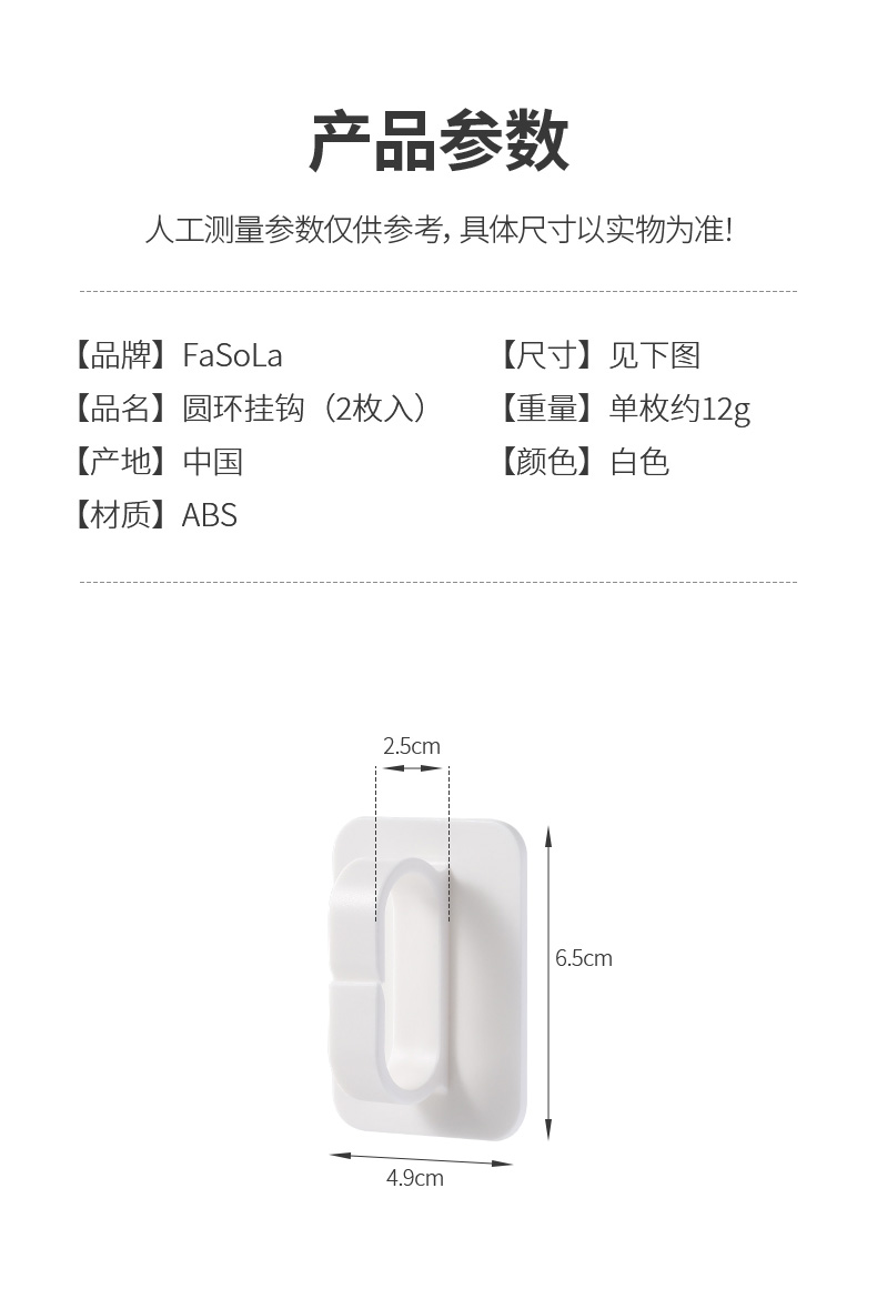 FaSoLa多功能圆环挂钩壁挂免打孔创意卫生间收纳粘钩环形置物挂架