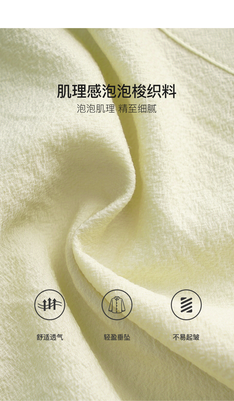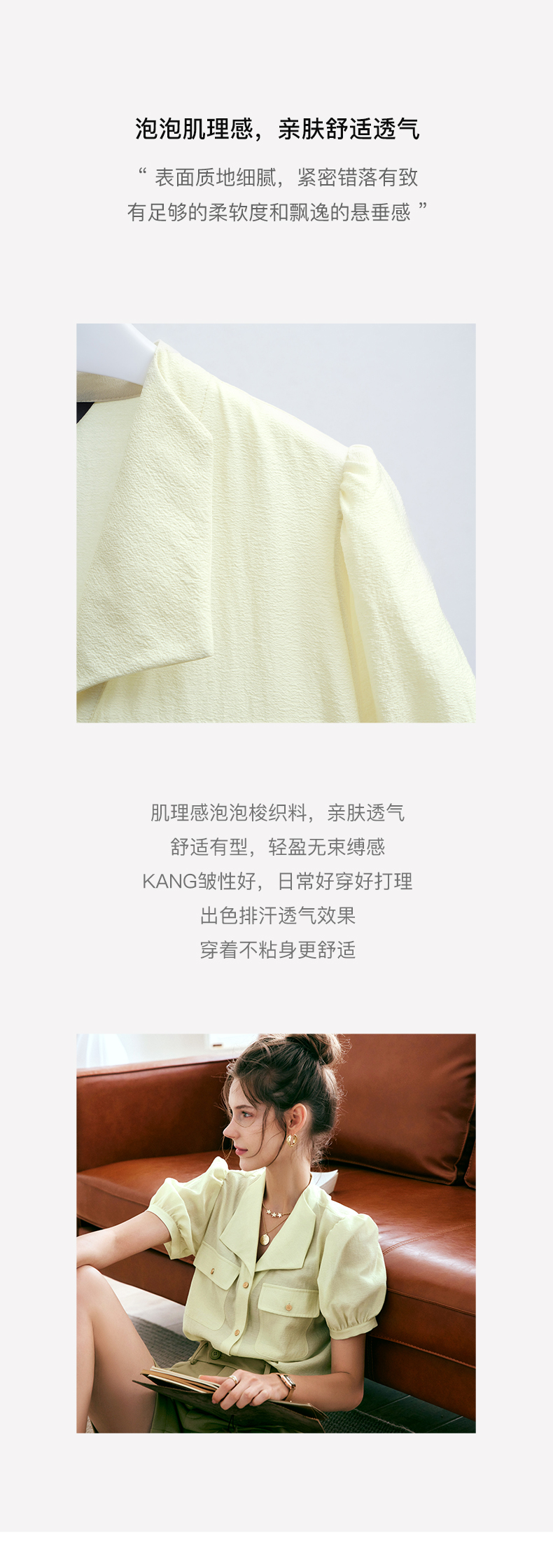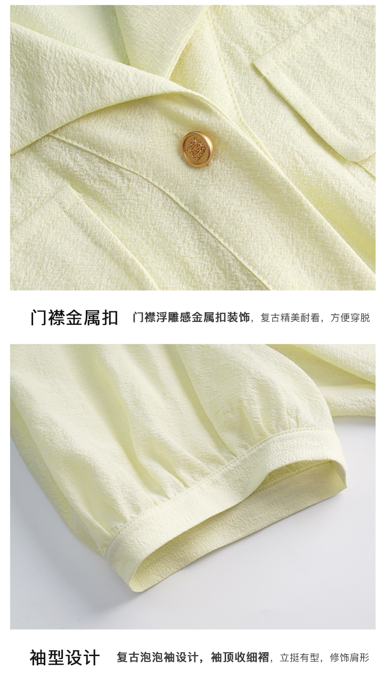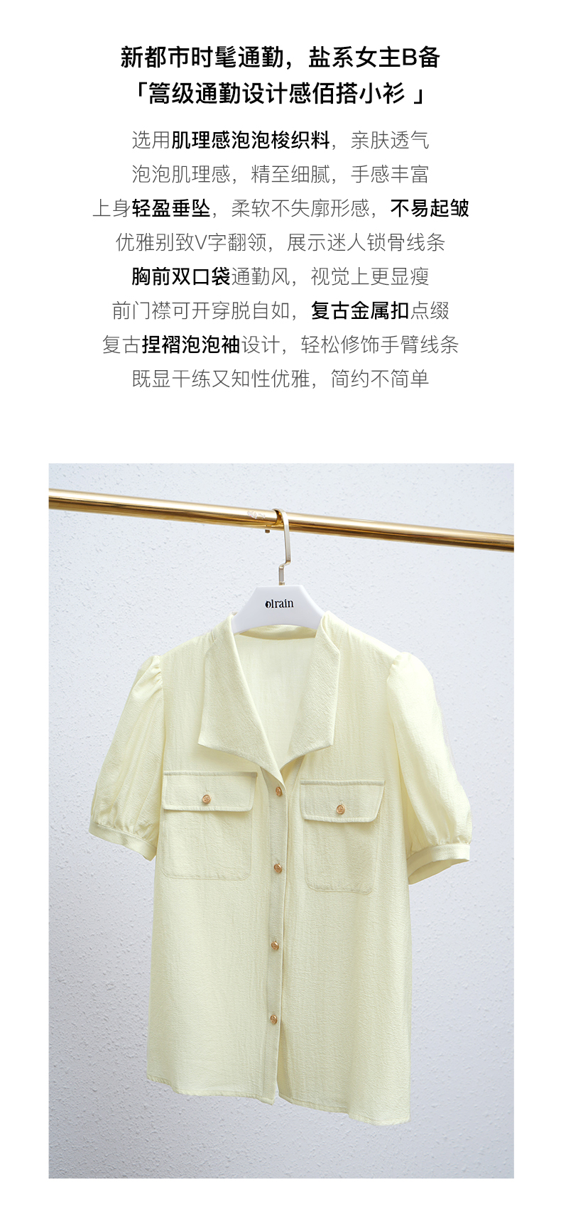 欧芮儿OLrain法式翻领衬衫女夏季2022新款时尚肌理感泡泡袖小衫