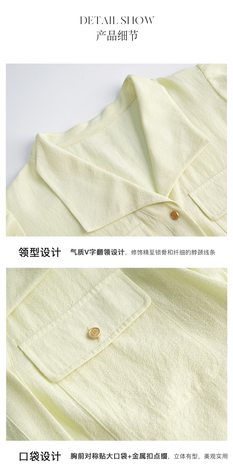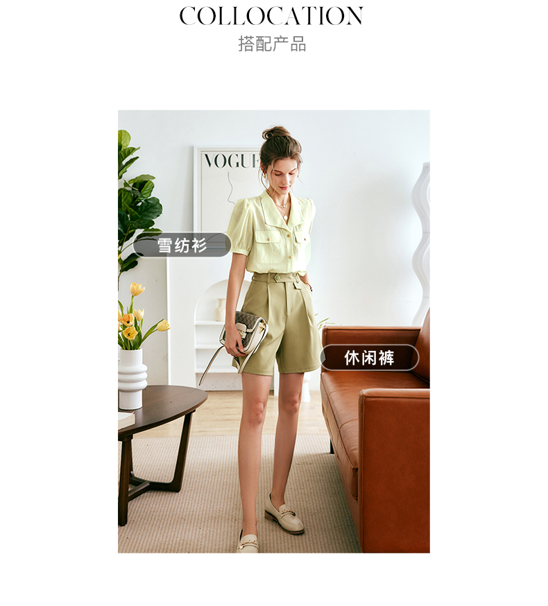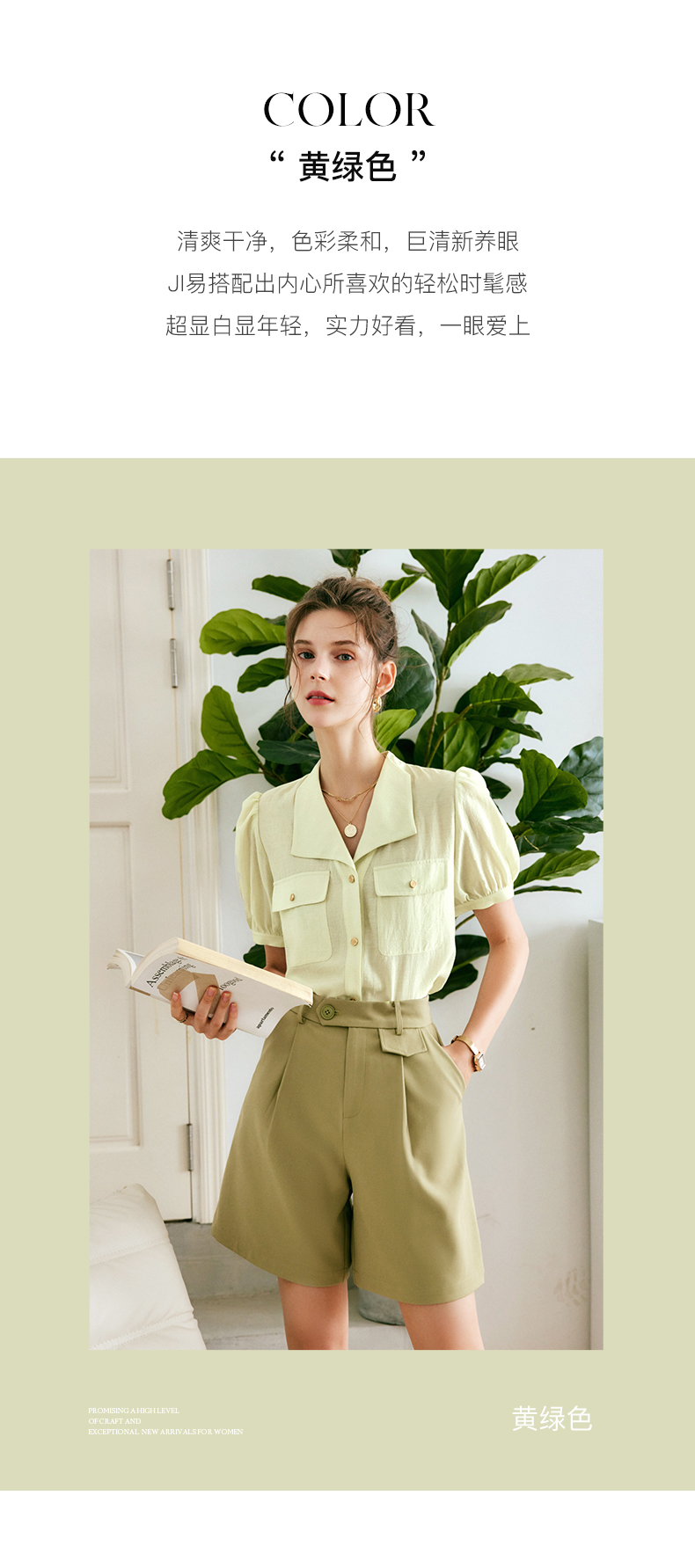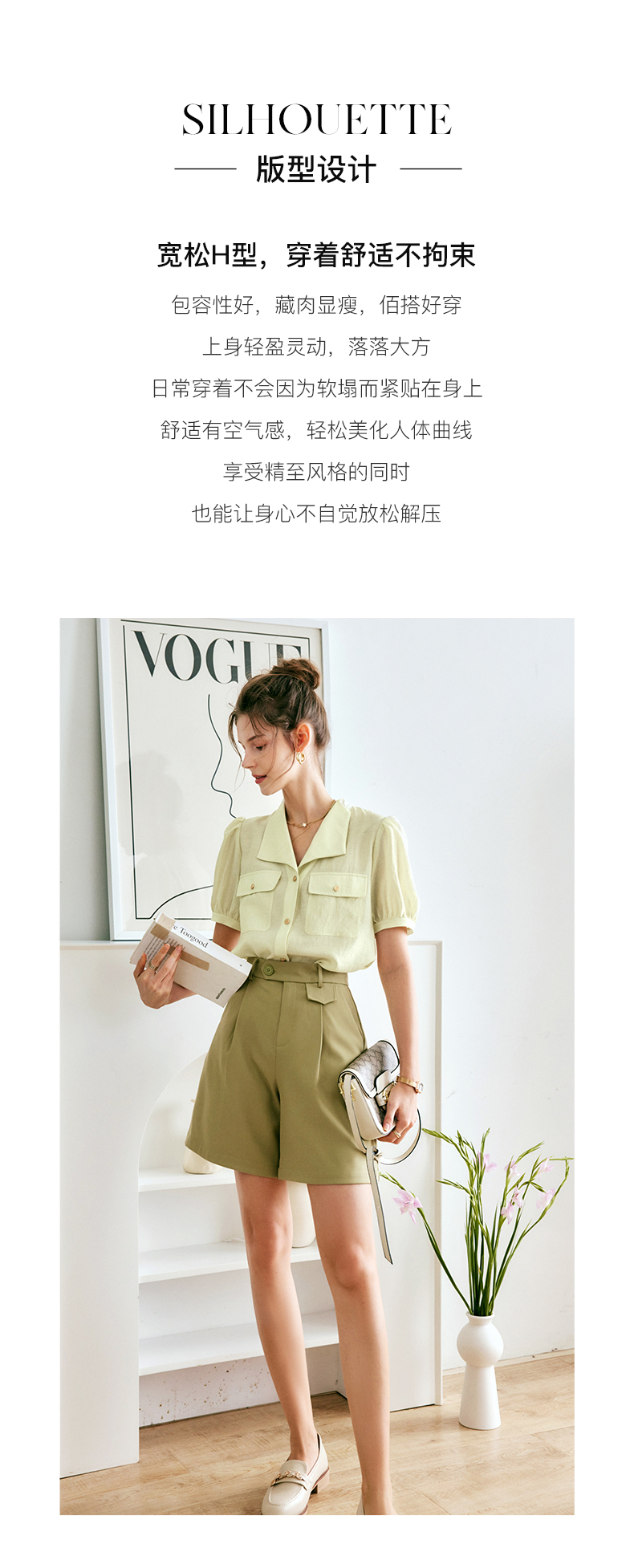 欧芮儿OLrain法式翻领衬衫女夏季2022新款时尚肌理感泡泡袖小衫