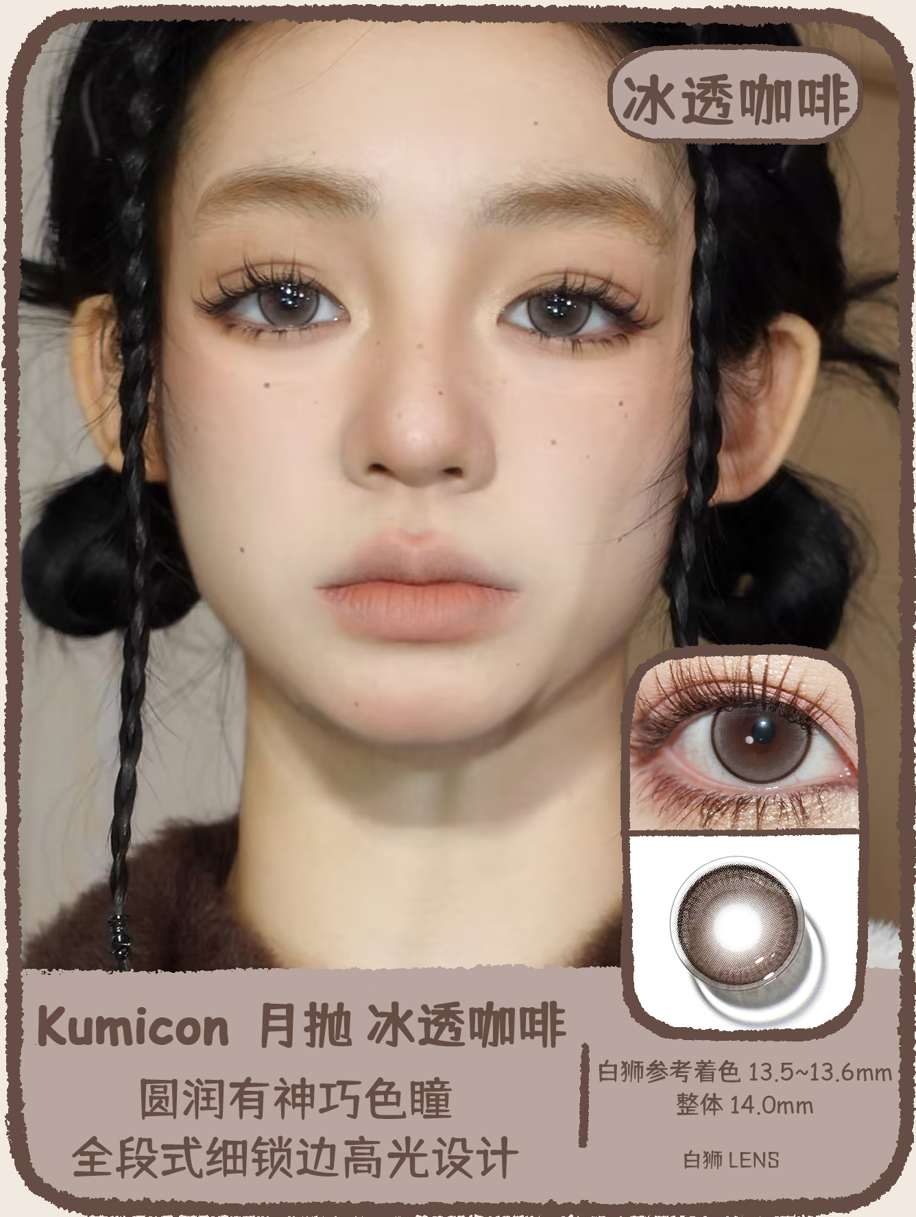 Kumicon旗下|冰透琉璃&冰透咖啡|14.0mm白狮参考着色中大直径 月抛 2片