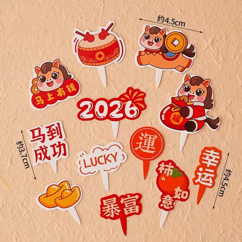 【10张装】2026新年插件 马到成功小马图案马上有钱柿柿如意装饰插件摆件