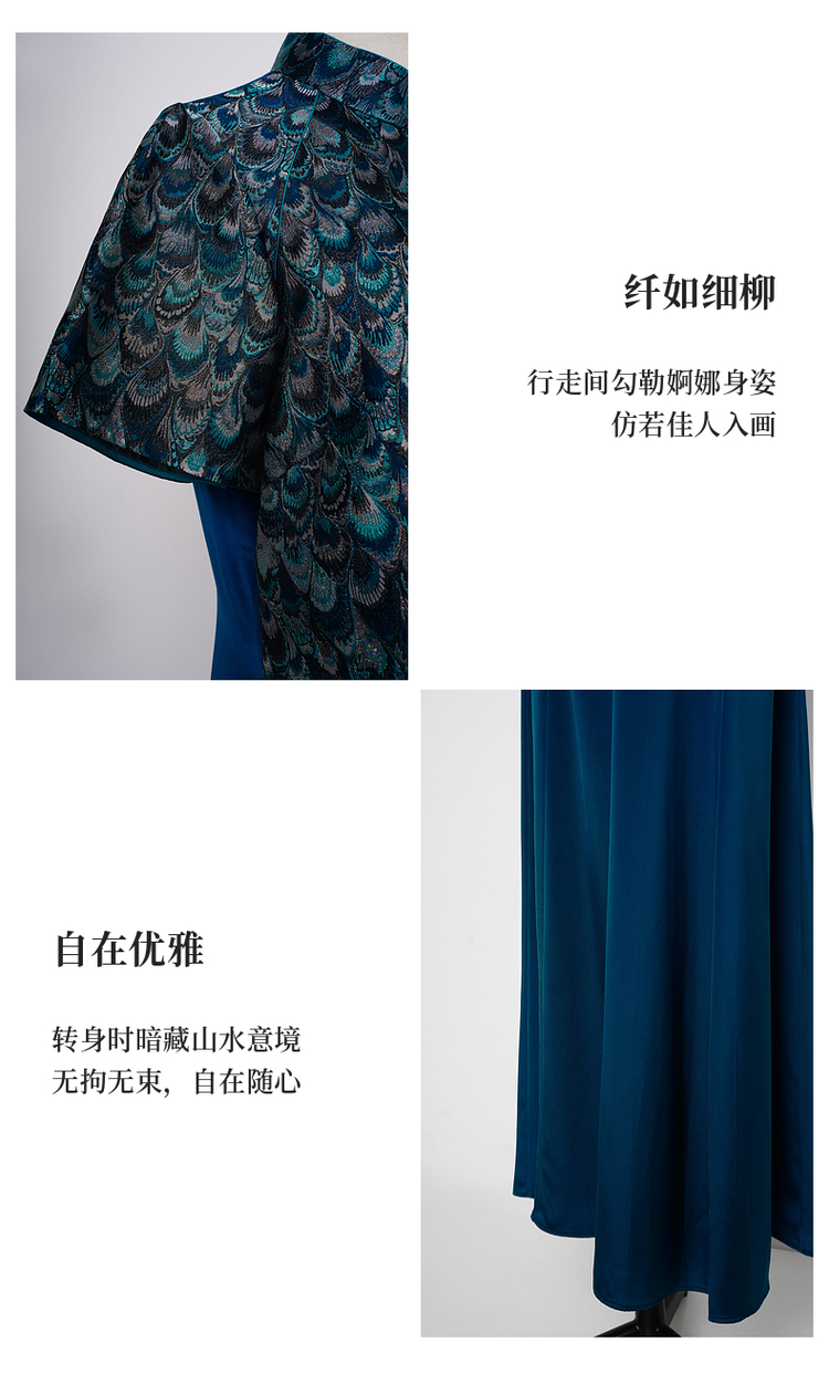 吉祥衣家新中式国风蚕桑丝裙子气质修身女装羽衣惊鸿连衣裙