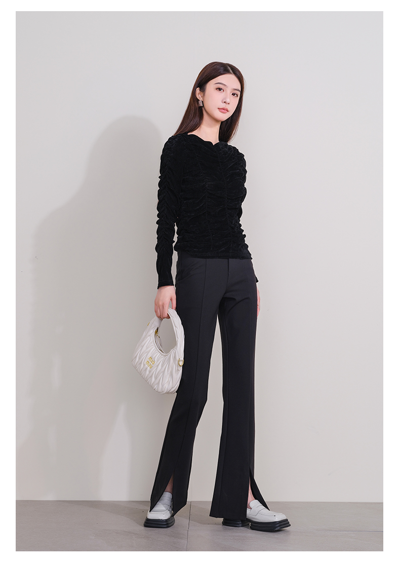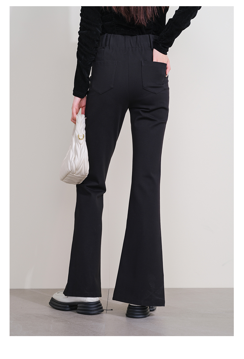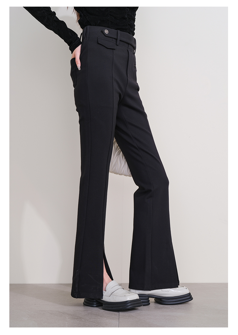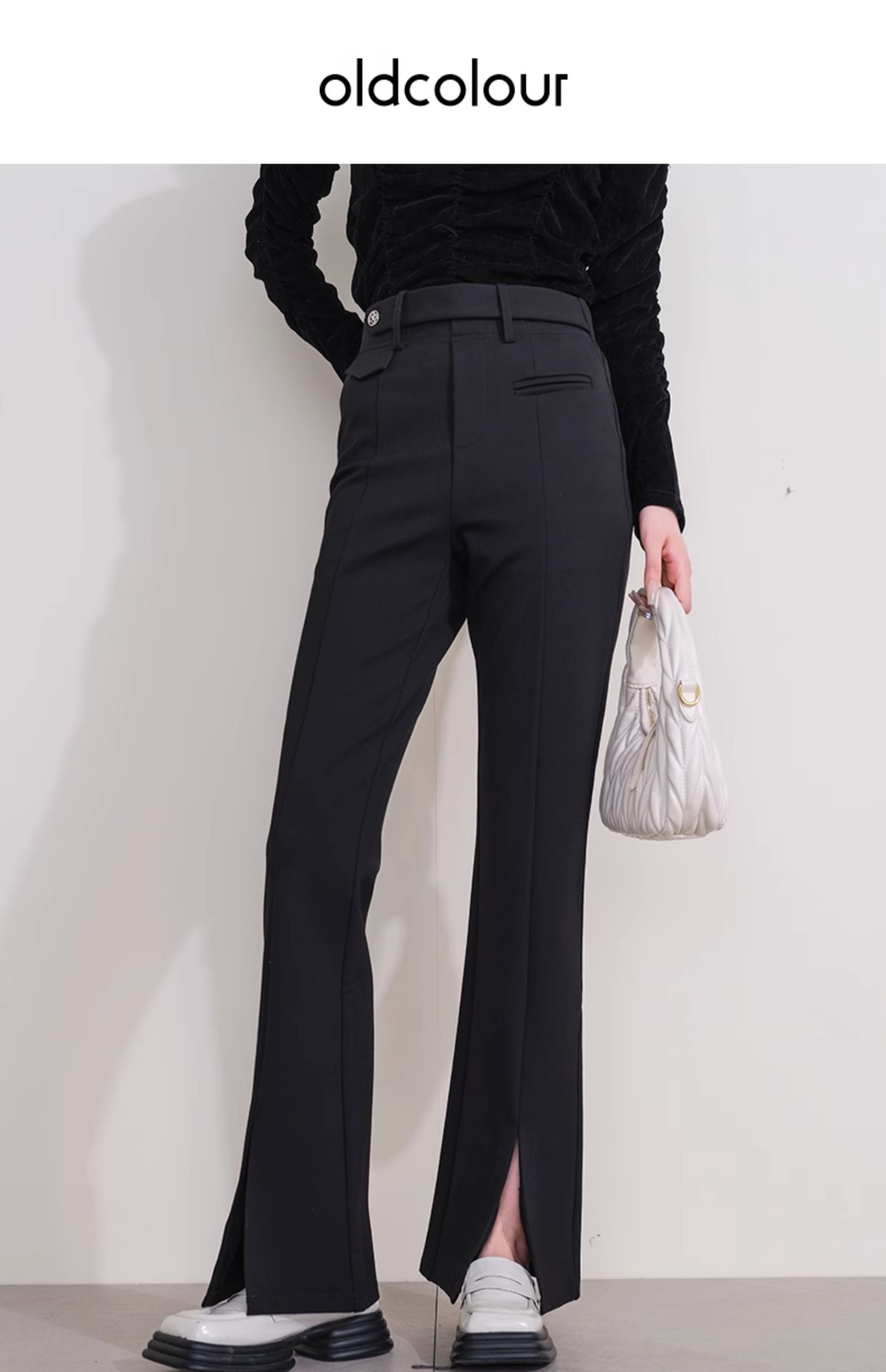 oldcolour欧珂冬季新款时尚开叉高腰松紧腰长裤女P430710A1