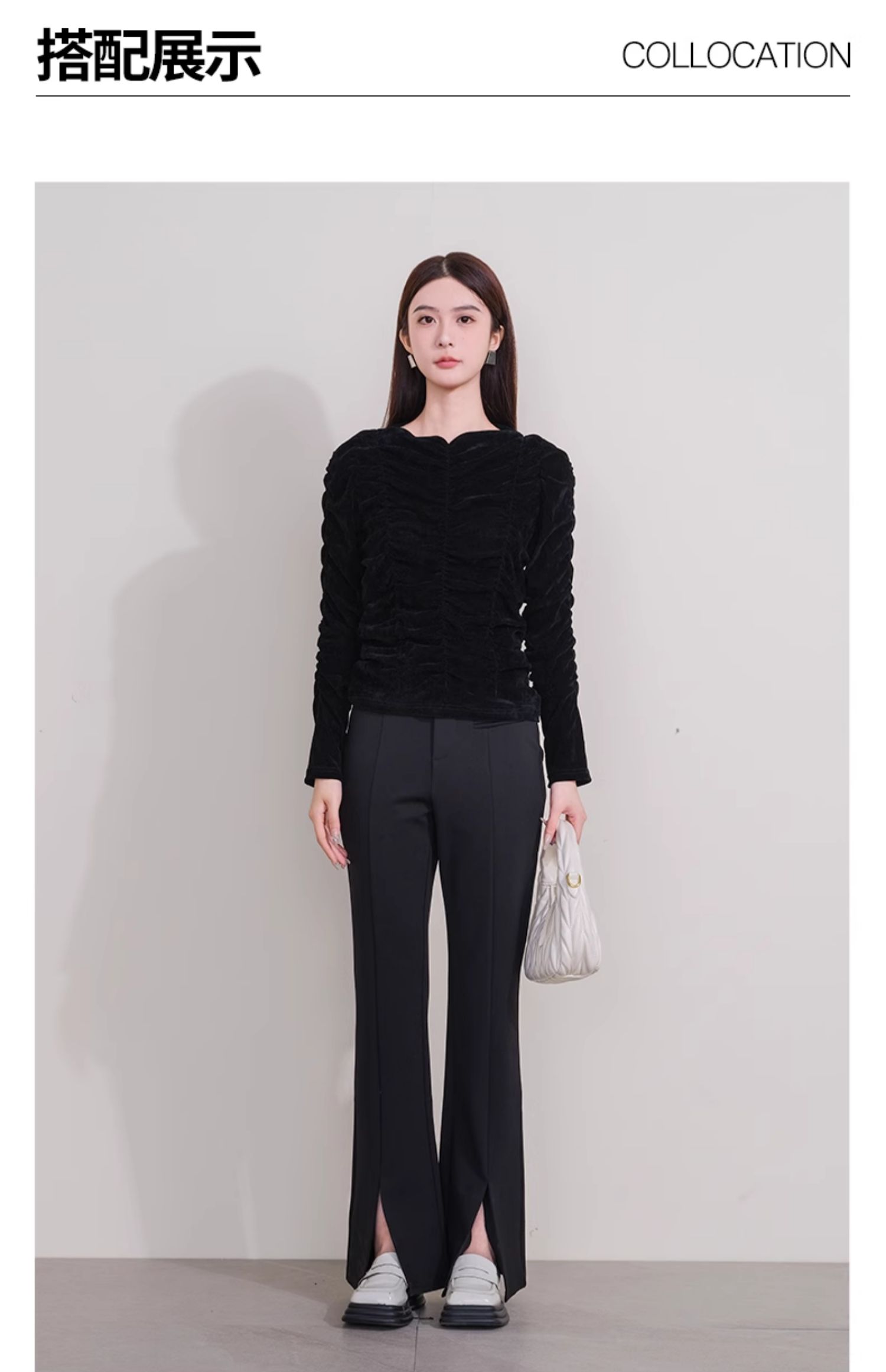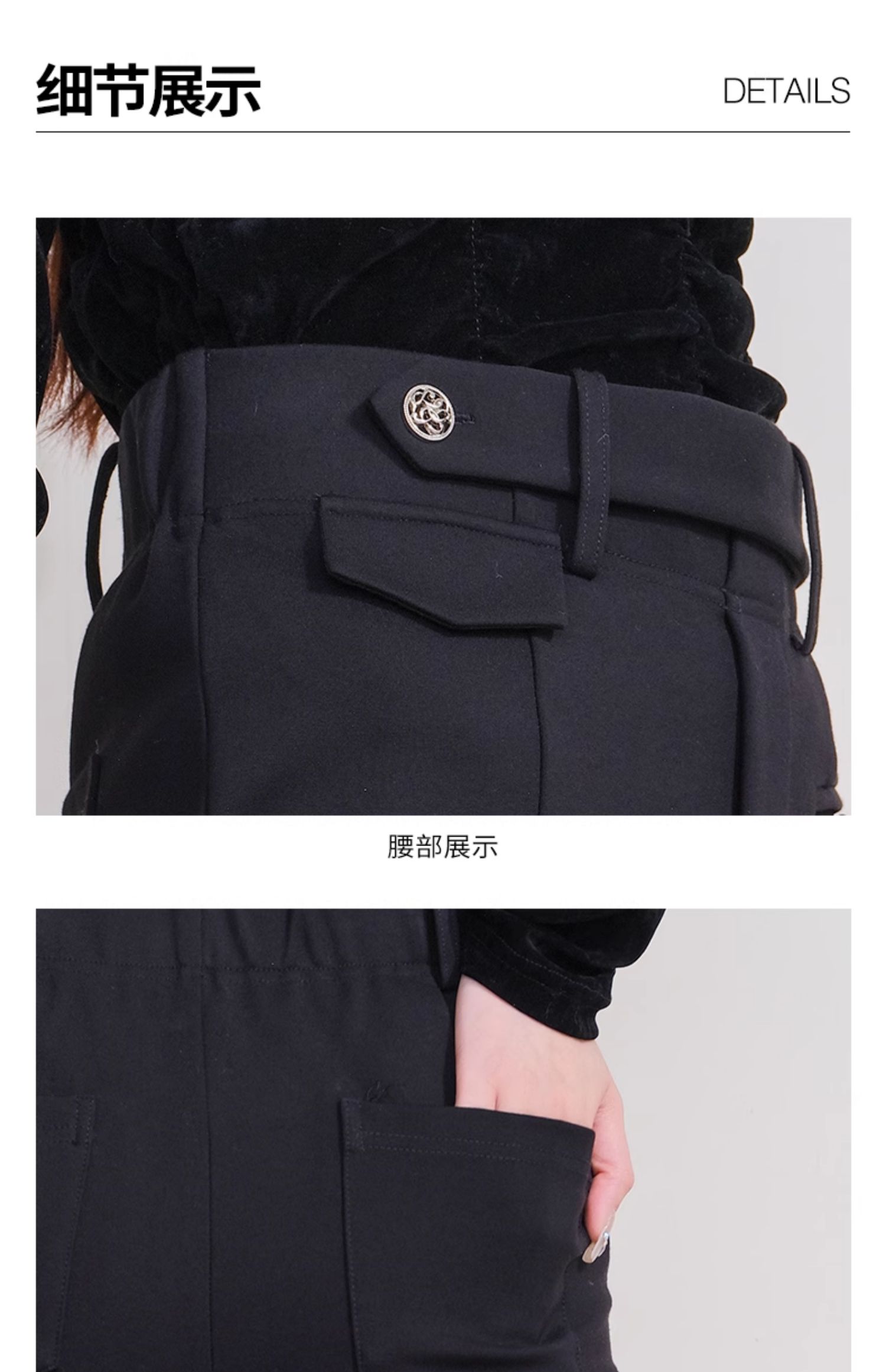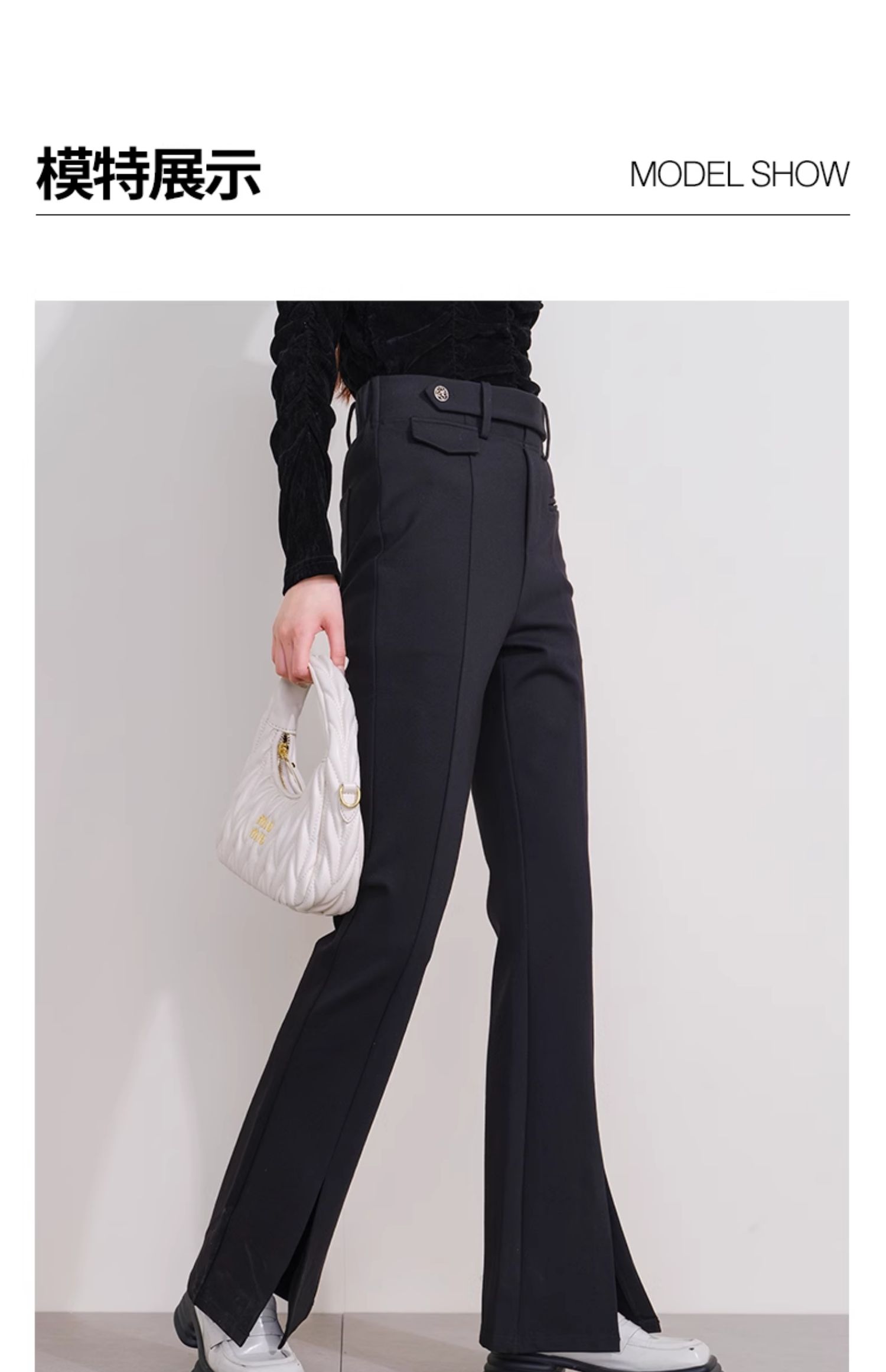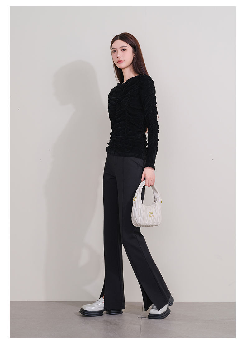 oldcolour欧珂冬季新款时尚开叉高腰松紧腰长裤女P430710A1