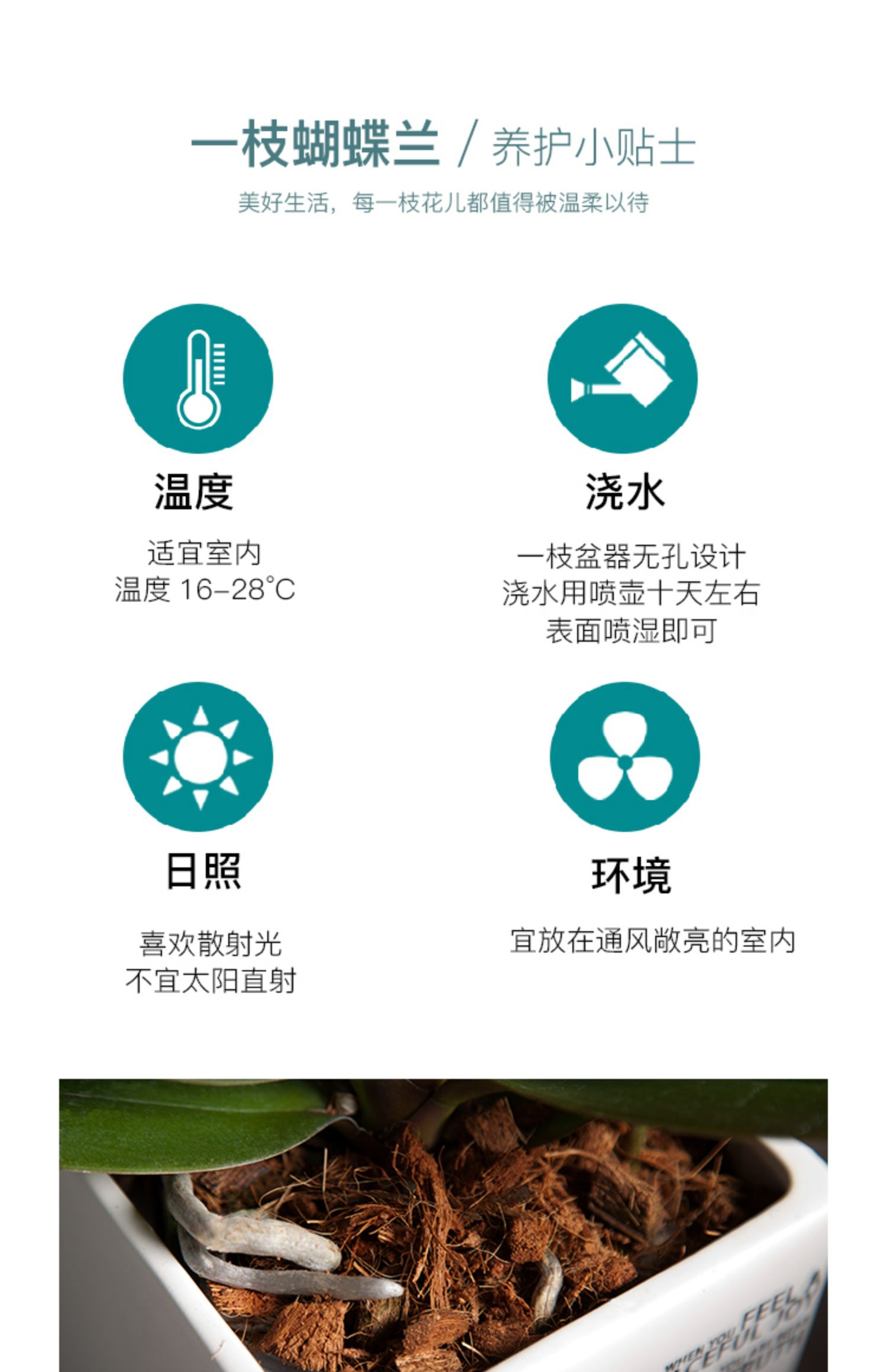 一枝菲拉拉 荷兰蝴蝶兰带花盆栽植物 椰块栽培无病菌感染