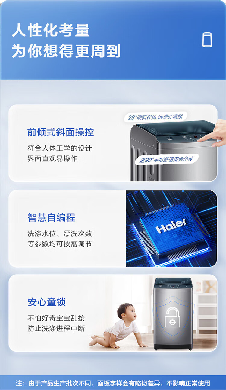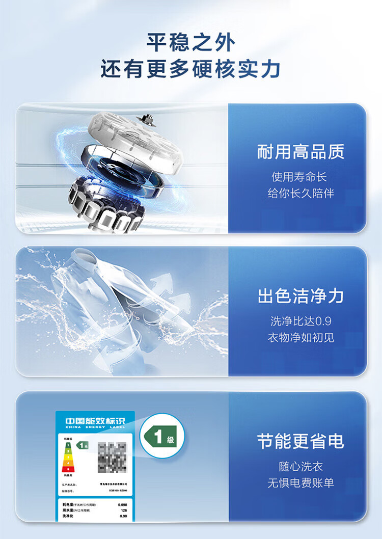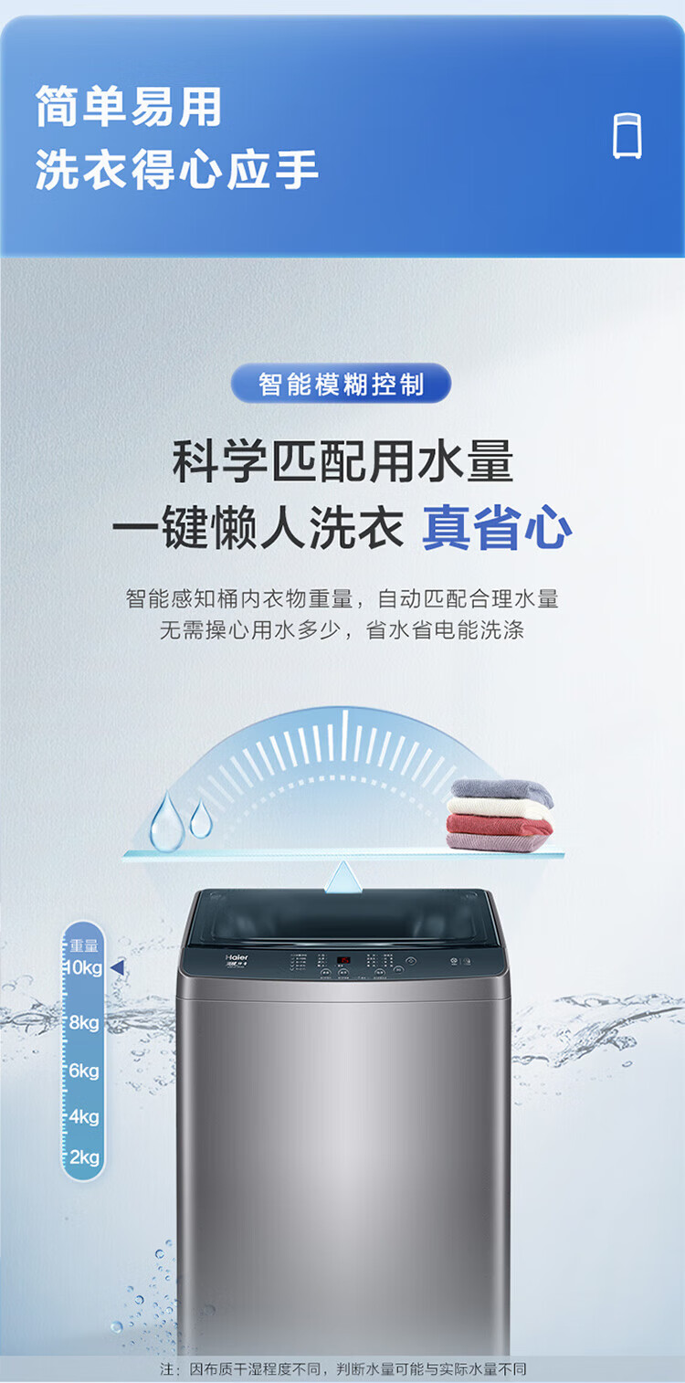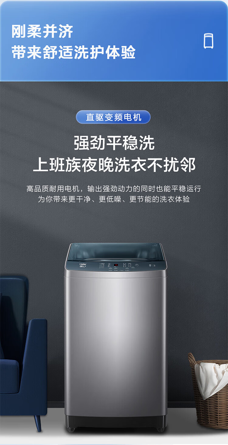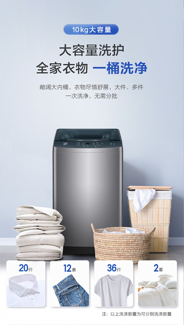 海尔(Haier)全自动家用波轮洗衣机10公斤直驱变频一级能效 超净洗 高洗净比 大容量BZ206升级款XQB100-BZ506
