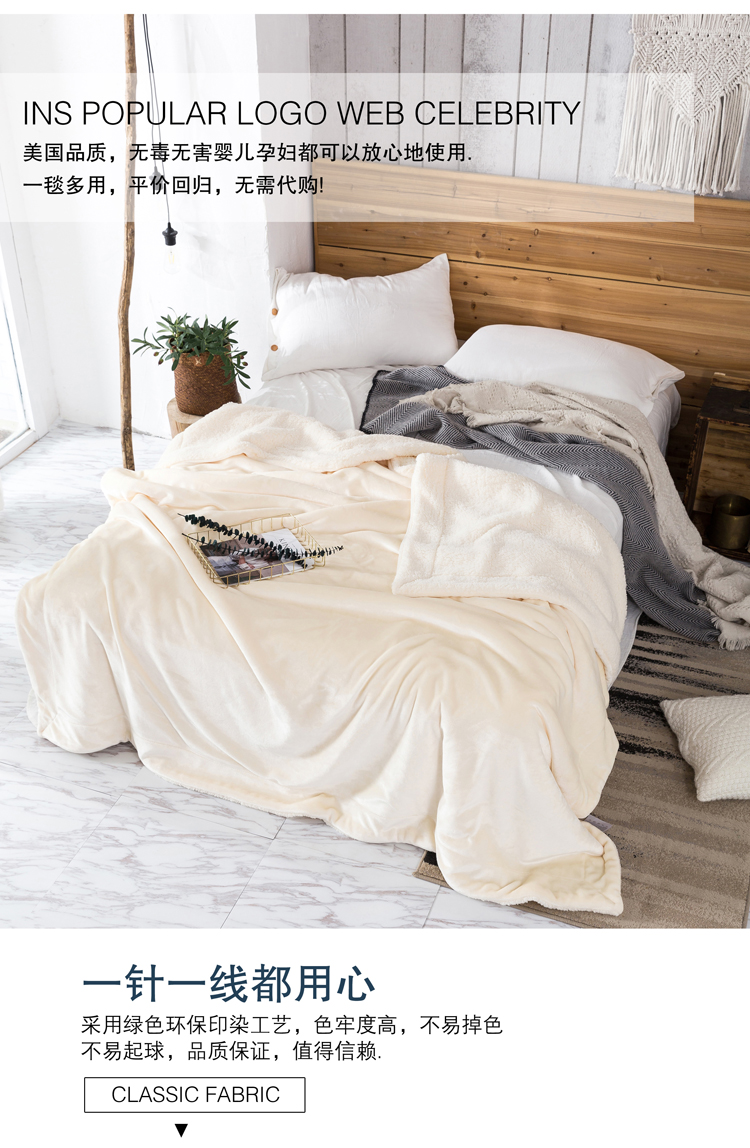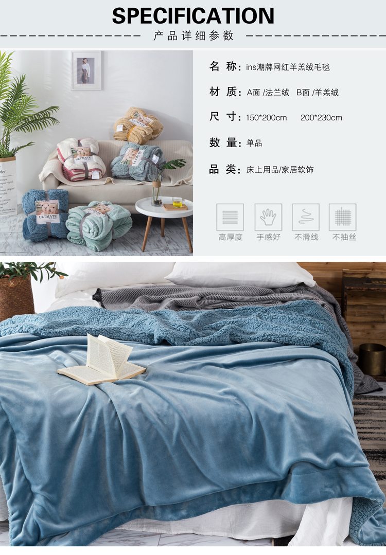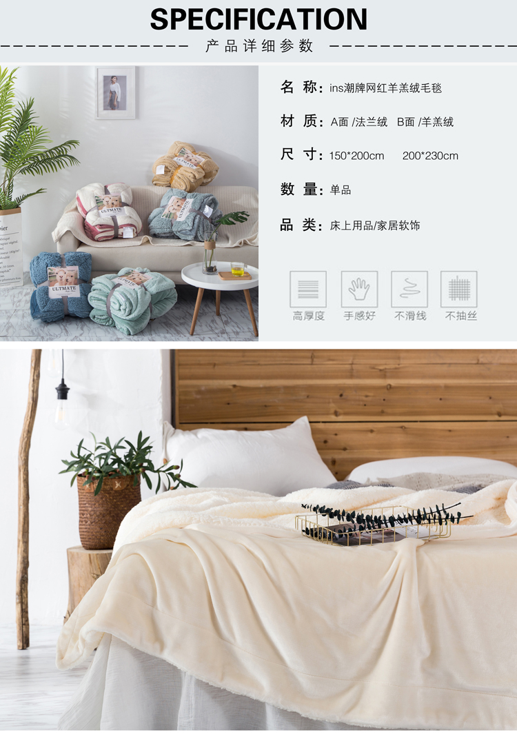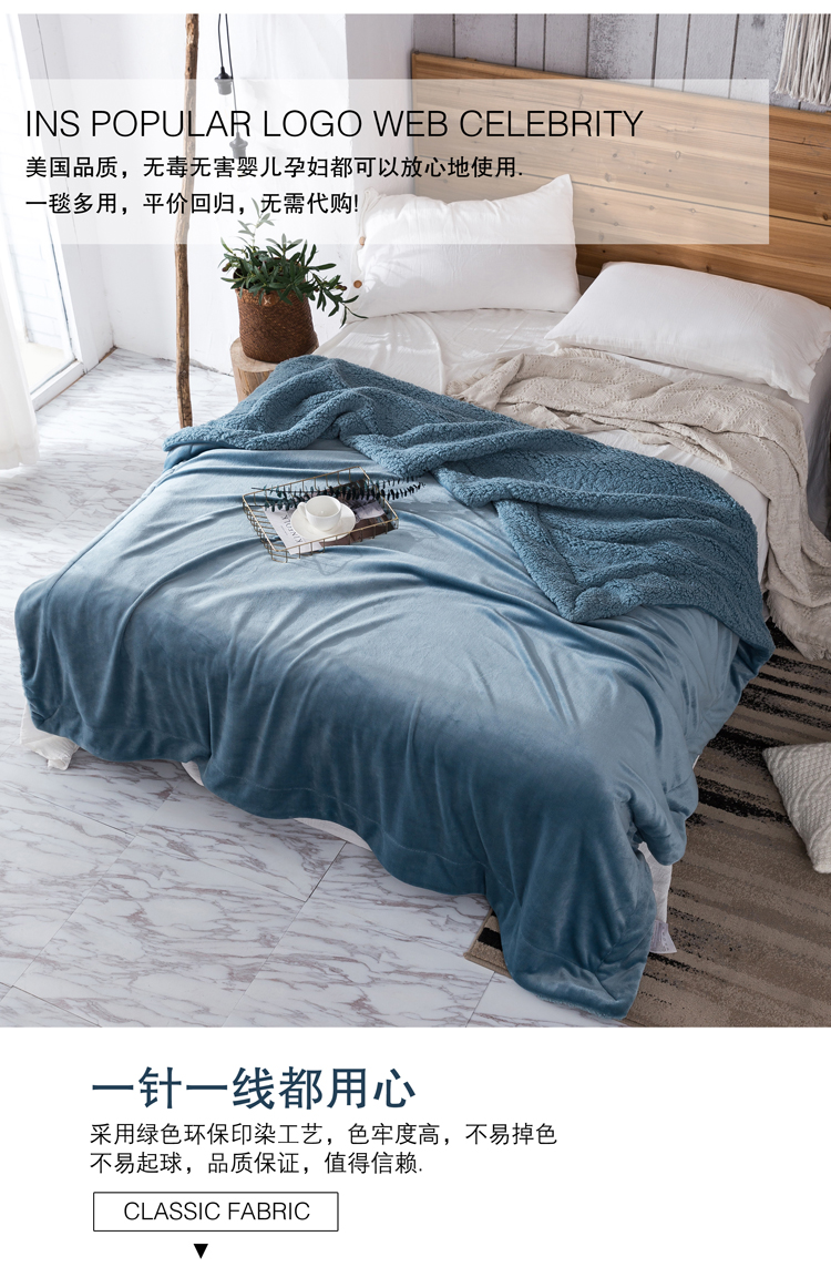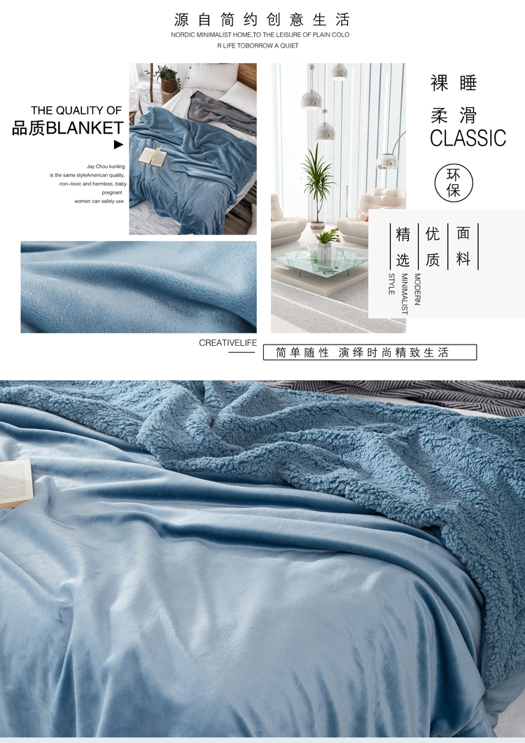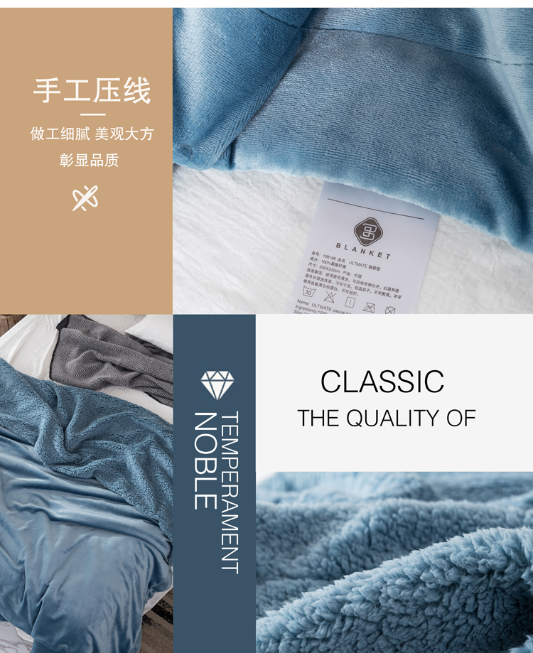 裸睡柔滑 羊羔绒双层毛毯 手感柔软 亲肤贴切 绒面丰盈 精选好料 匠心制作