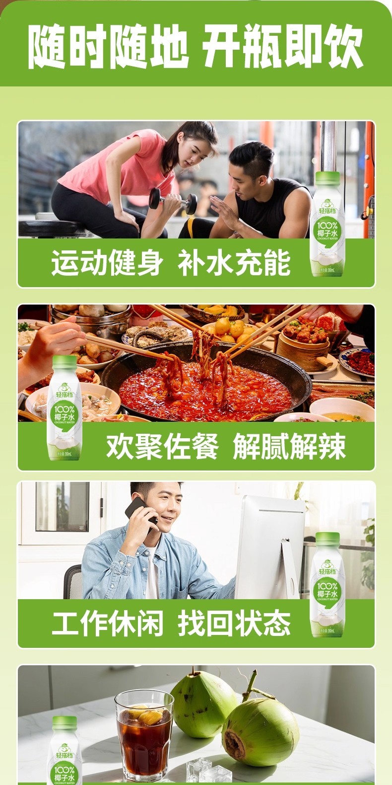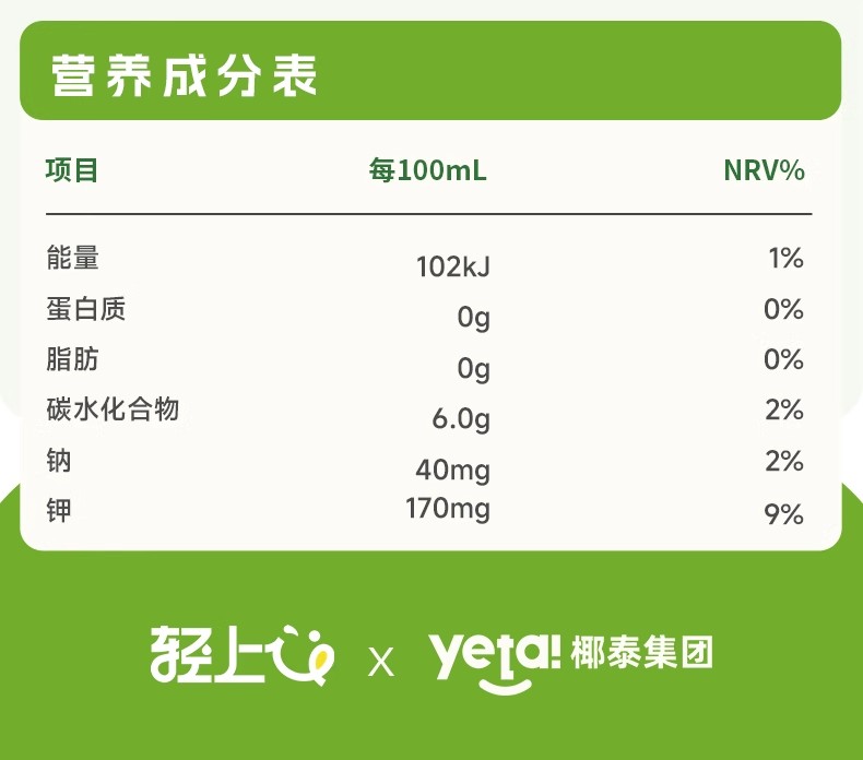 【秒杀】轻上100%椰子水360ml/瓶