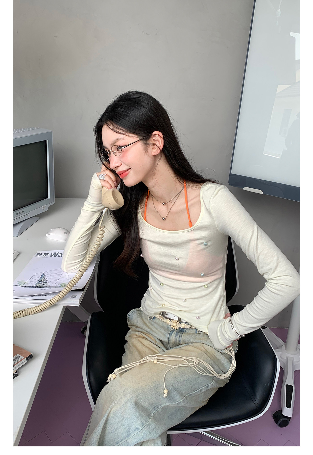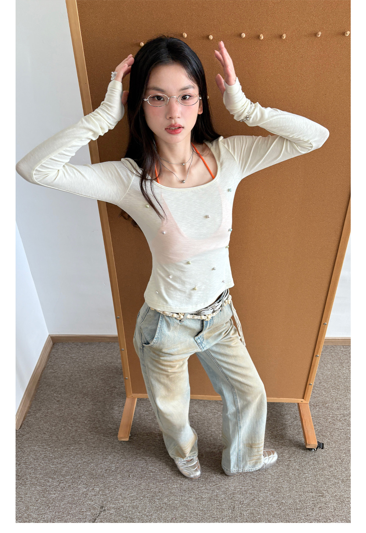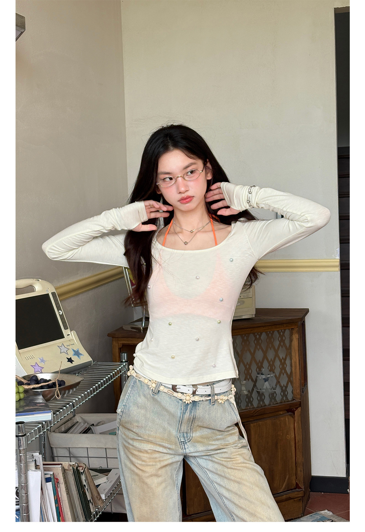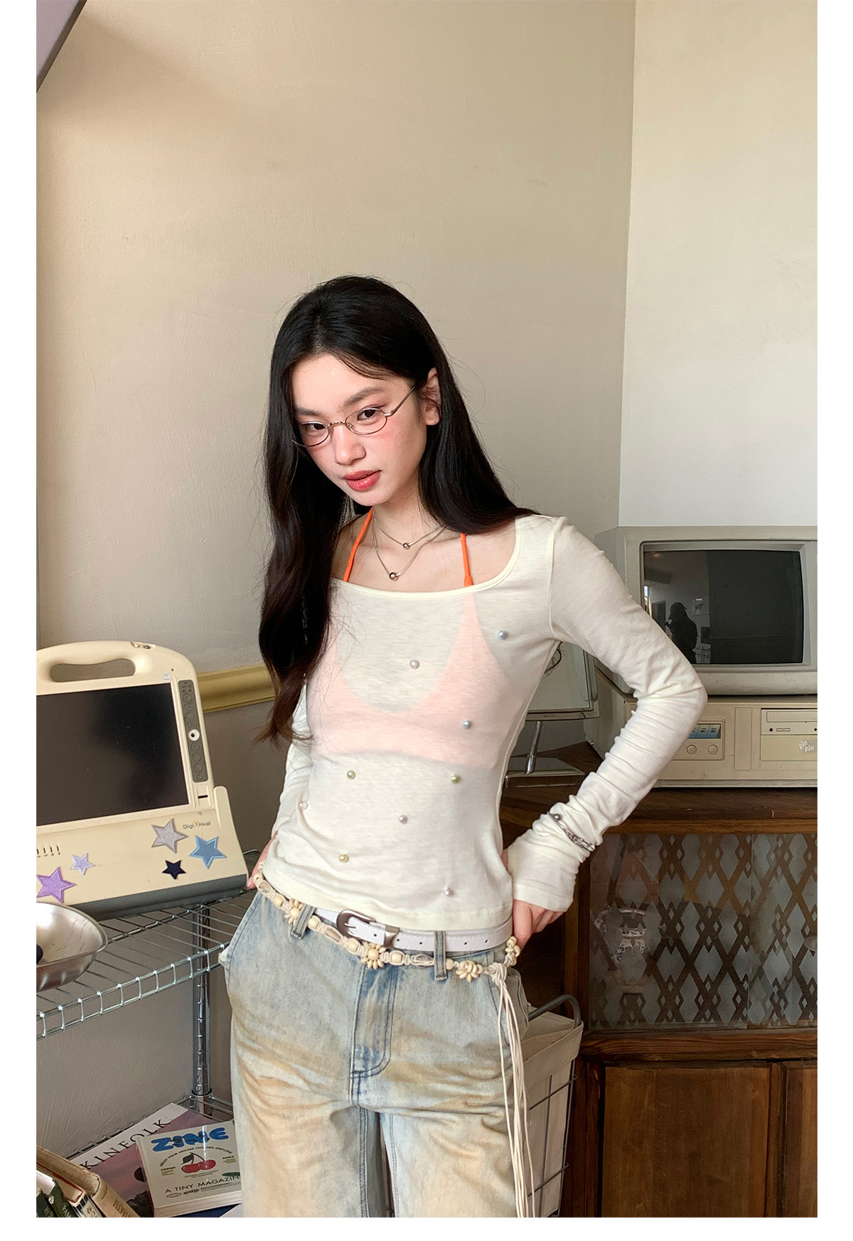 FTT FlyTheTruth『繁星点点』重工钉珠长袖T恤女夏季薄款透气罩衫