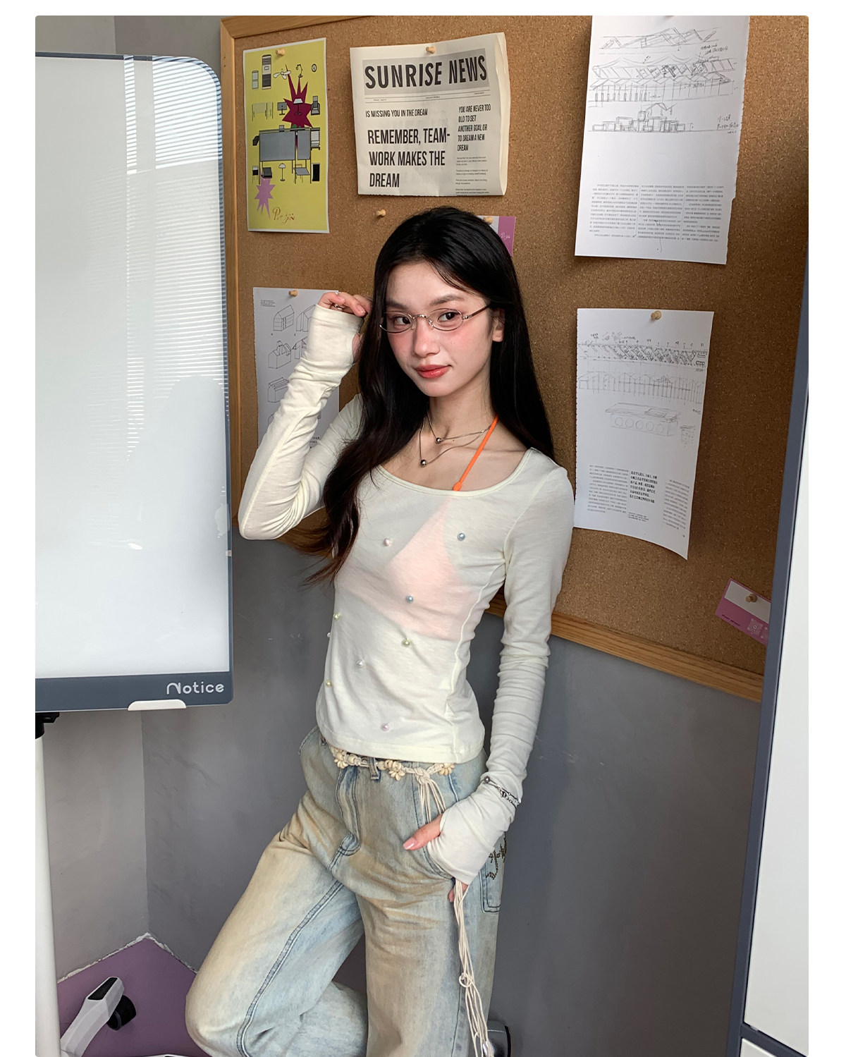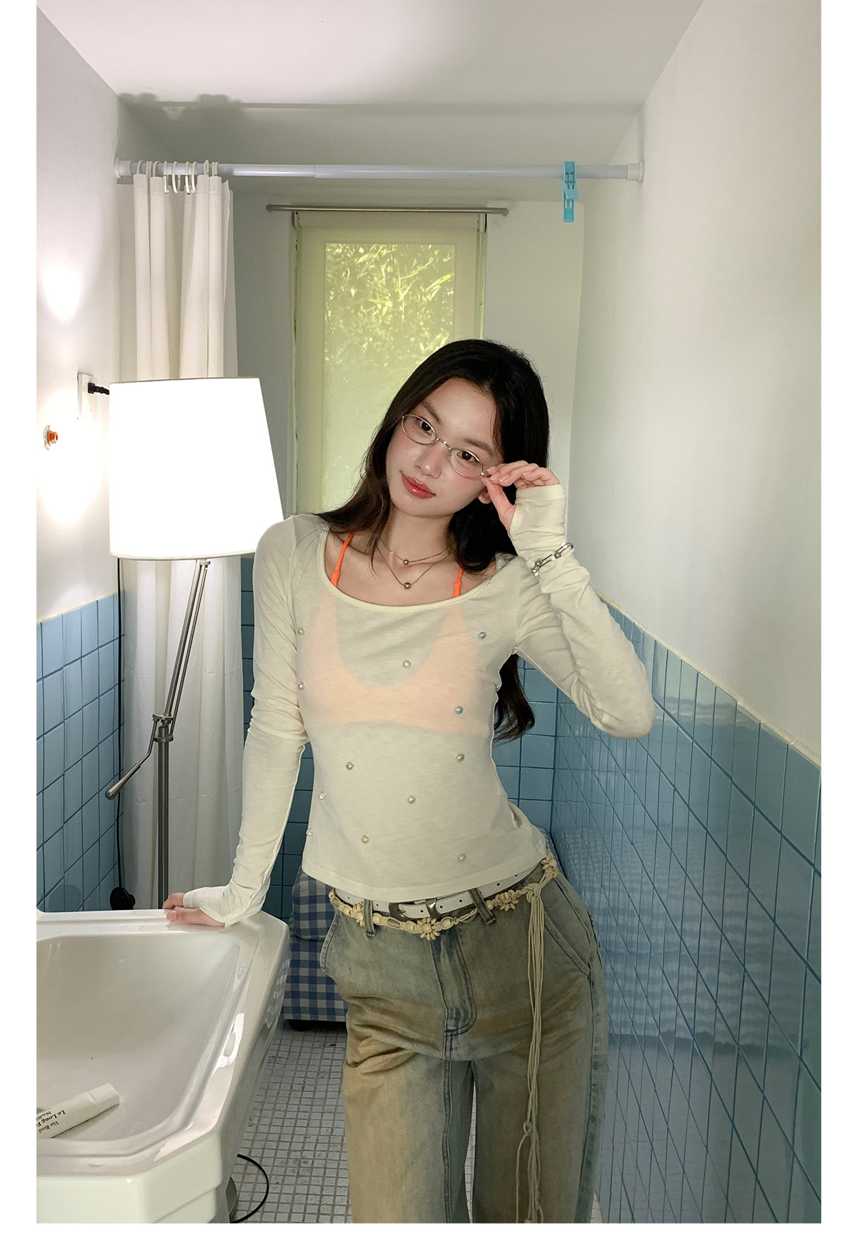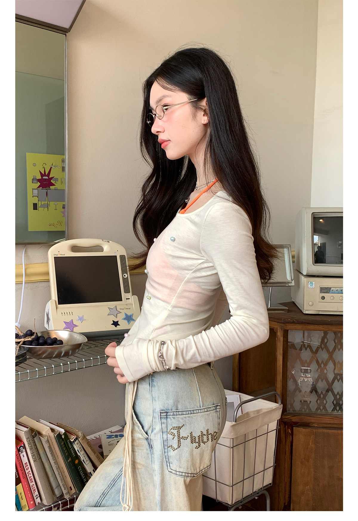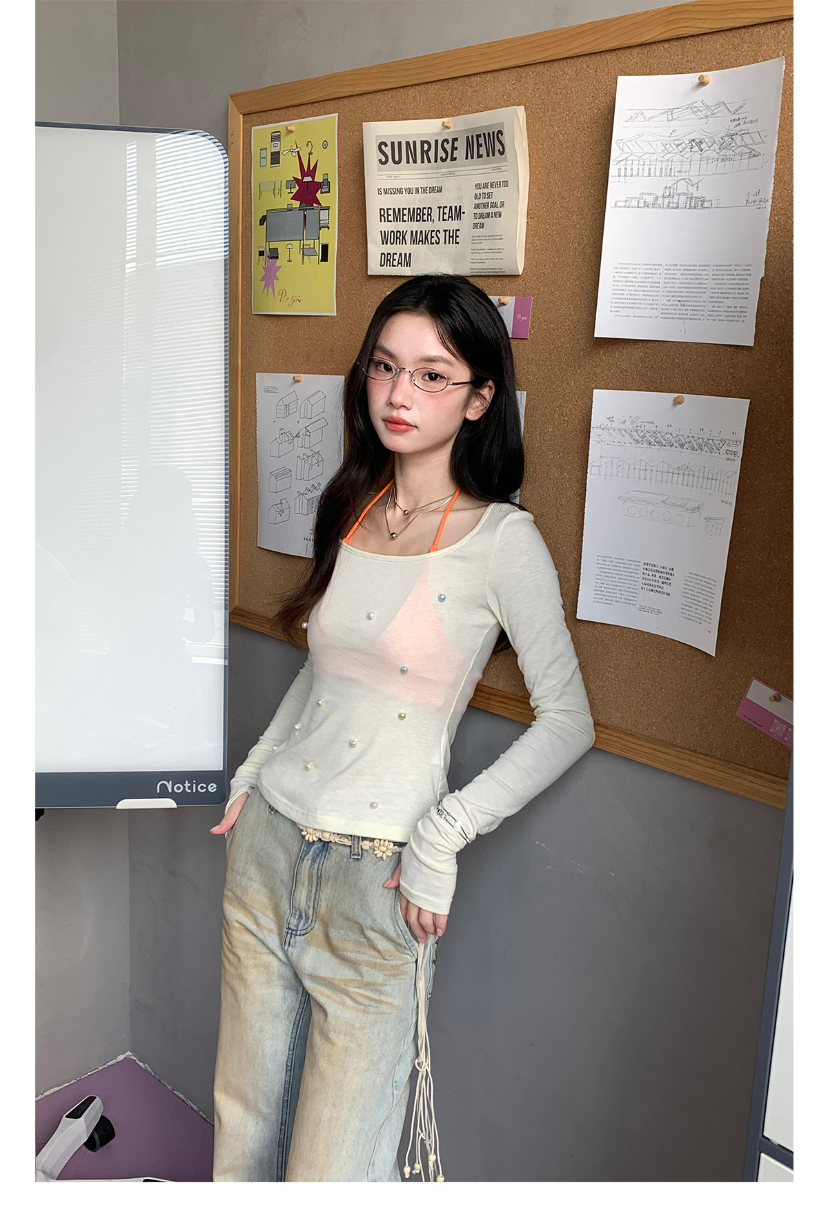 FTT FlyTheTruth『繁星点点』重工钉珠长袖T恤女夏季薄款透气罩衫