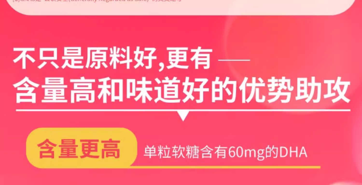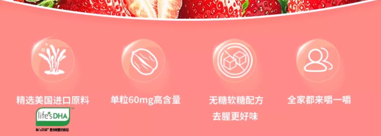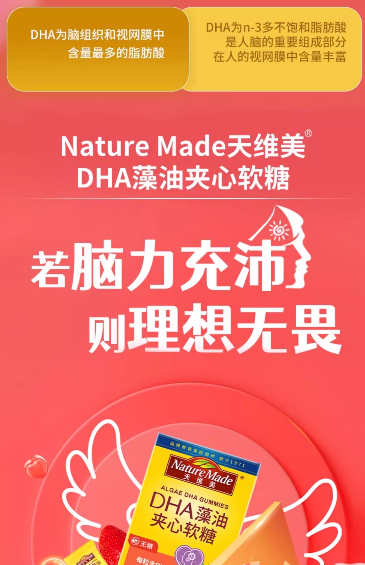 【国内版】NatureMade天维美®DHA藻油夹心软糖120g(30粒)草莓味 益智明眸