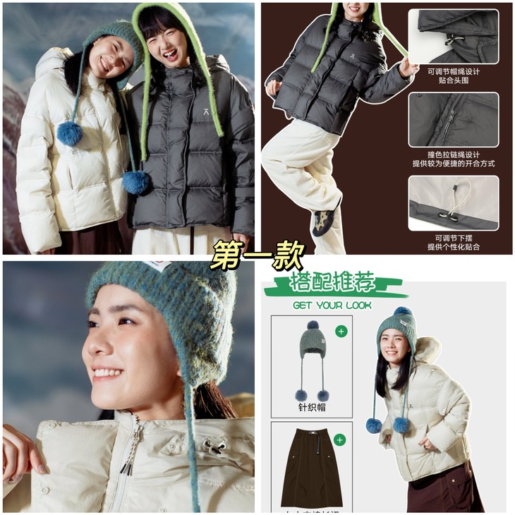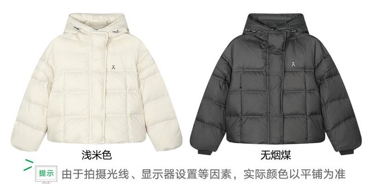 款式一:爱棵米女士连帽羽绒服—浅米色、无烟煤GAG2110824G