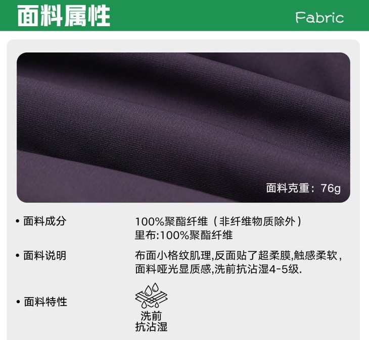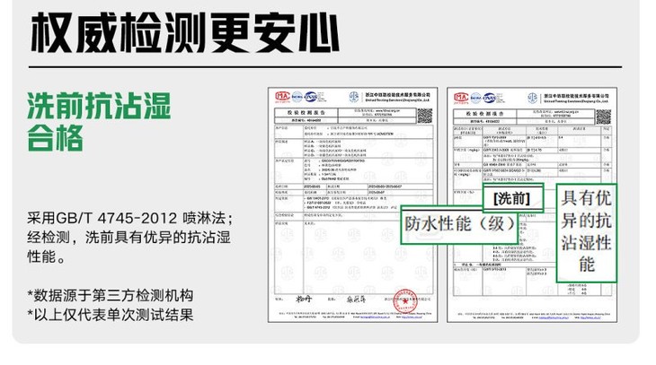 ✅防泼水面料,洗前洗后防泼水4-5级