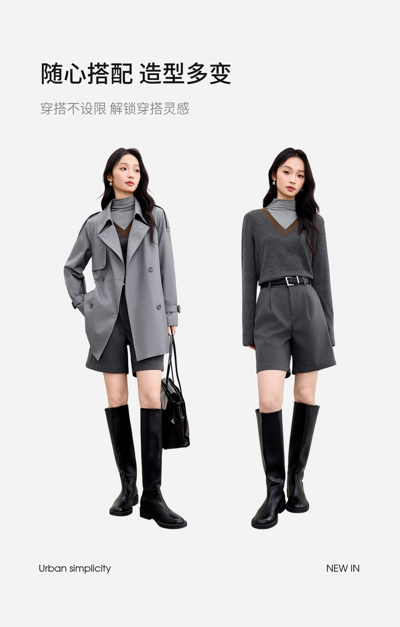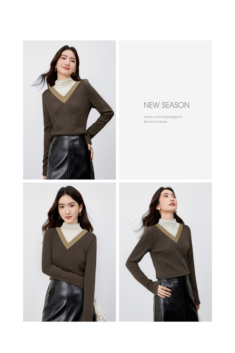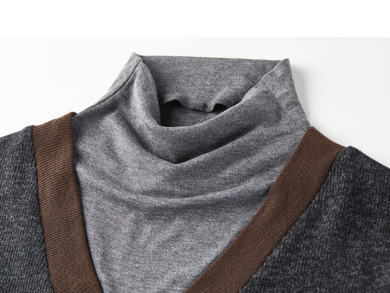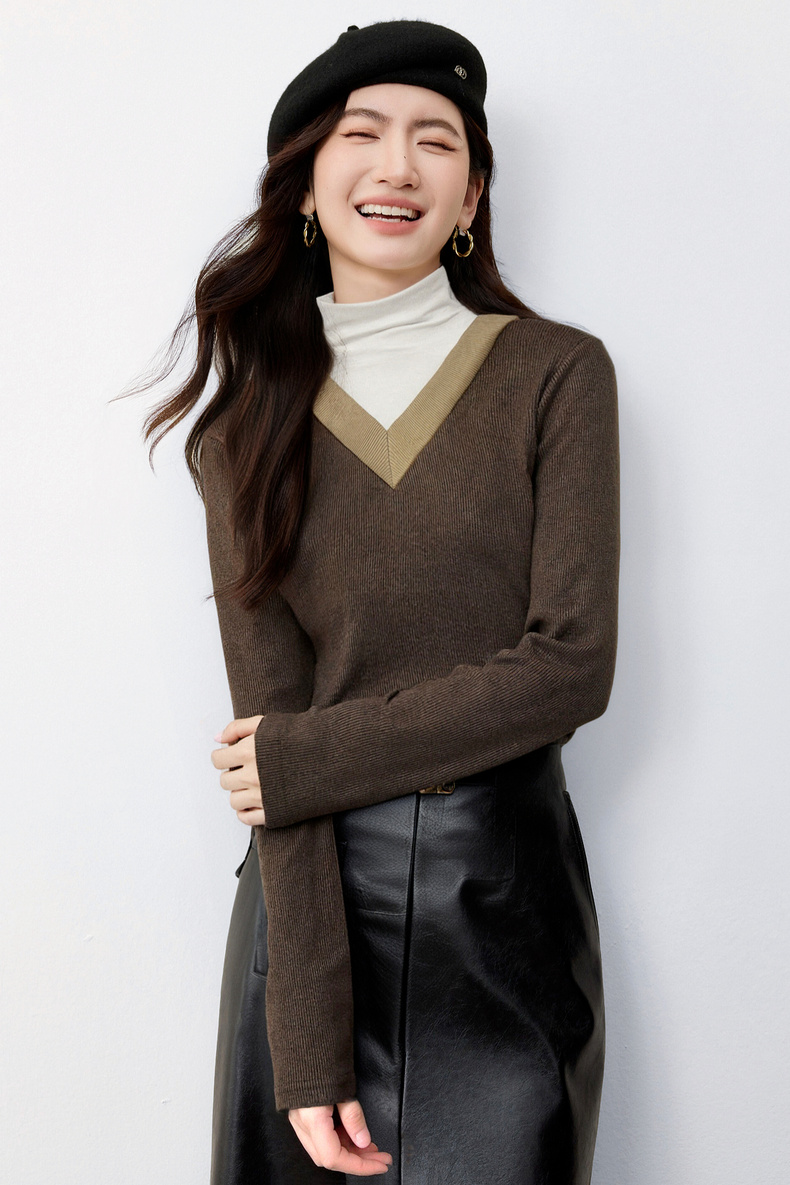 【内购】【假两件】通勤设计感撞色拼接半高领弹力针织衫-153H58653