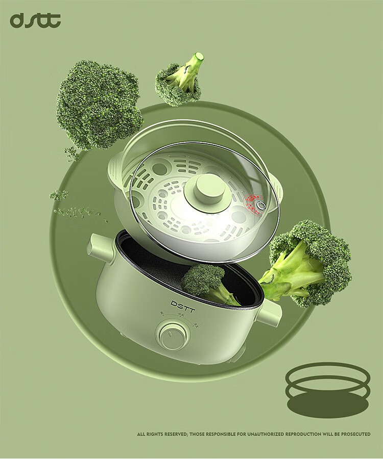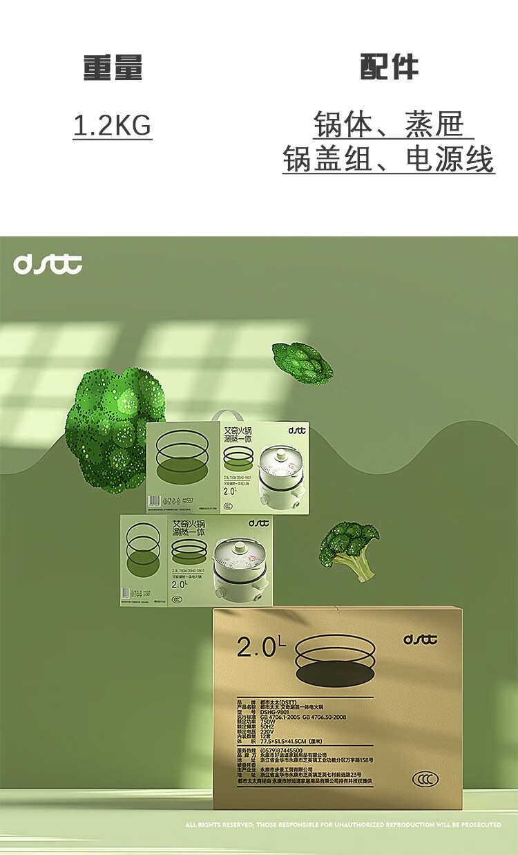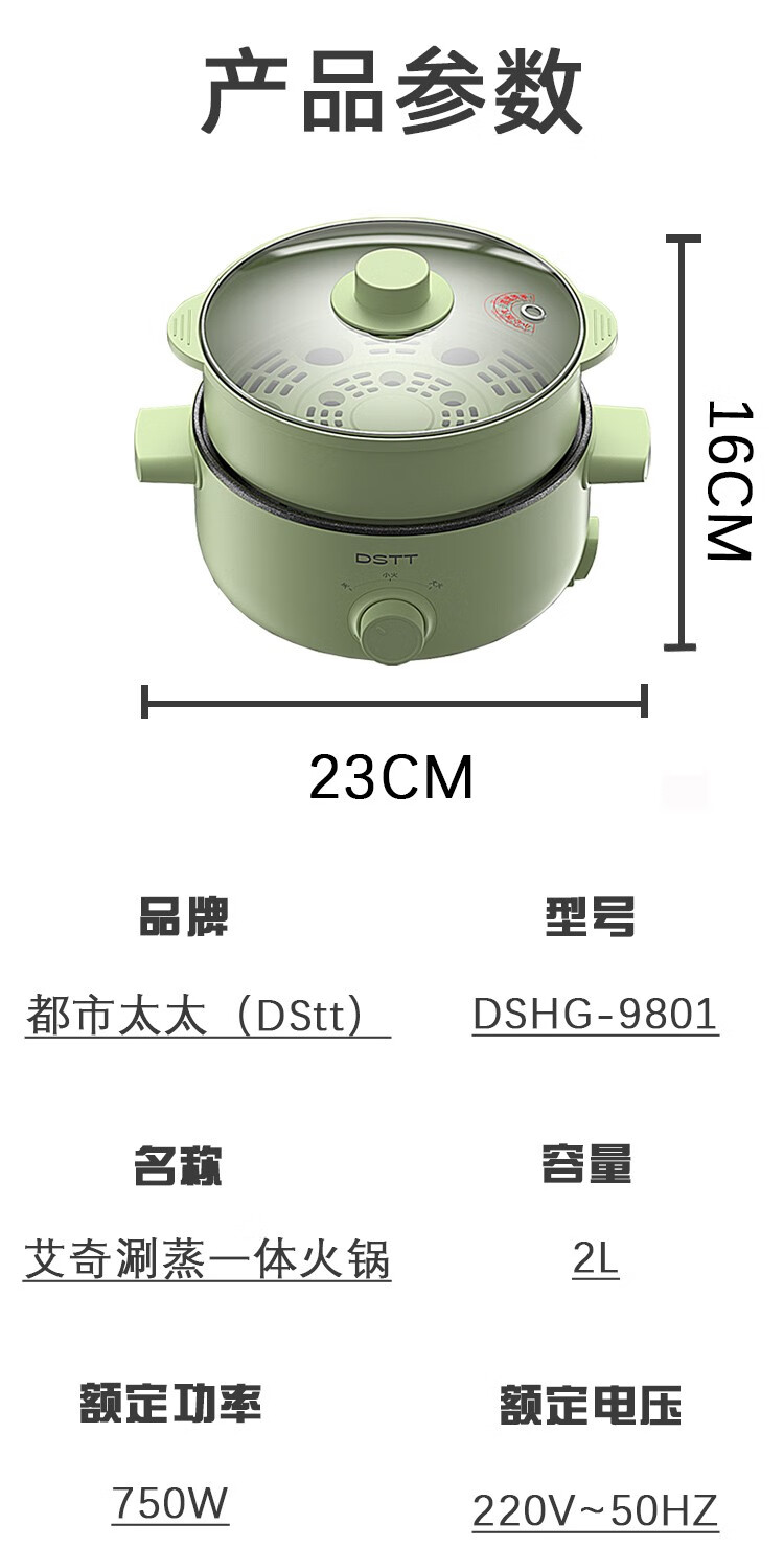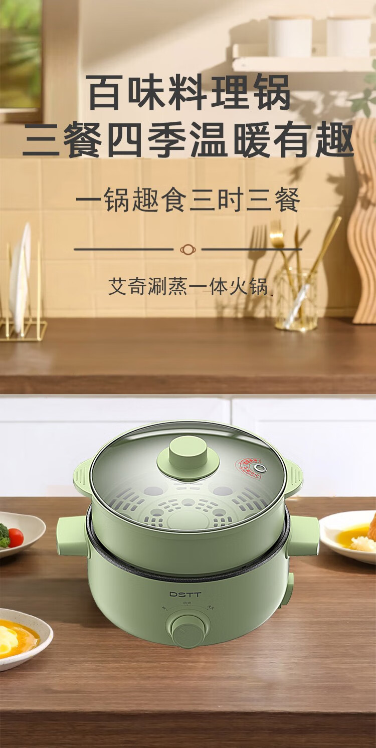 都市太太(DStt)都市太太艾奇蒸煮一体电火锅多功能多用途锅电热锅分体式不粘锅