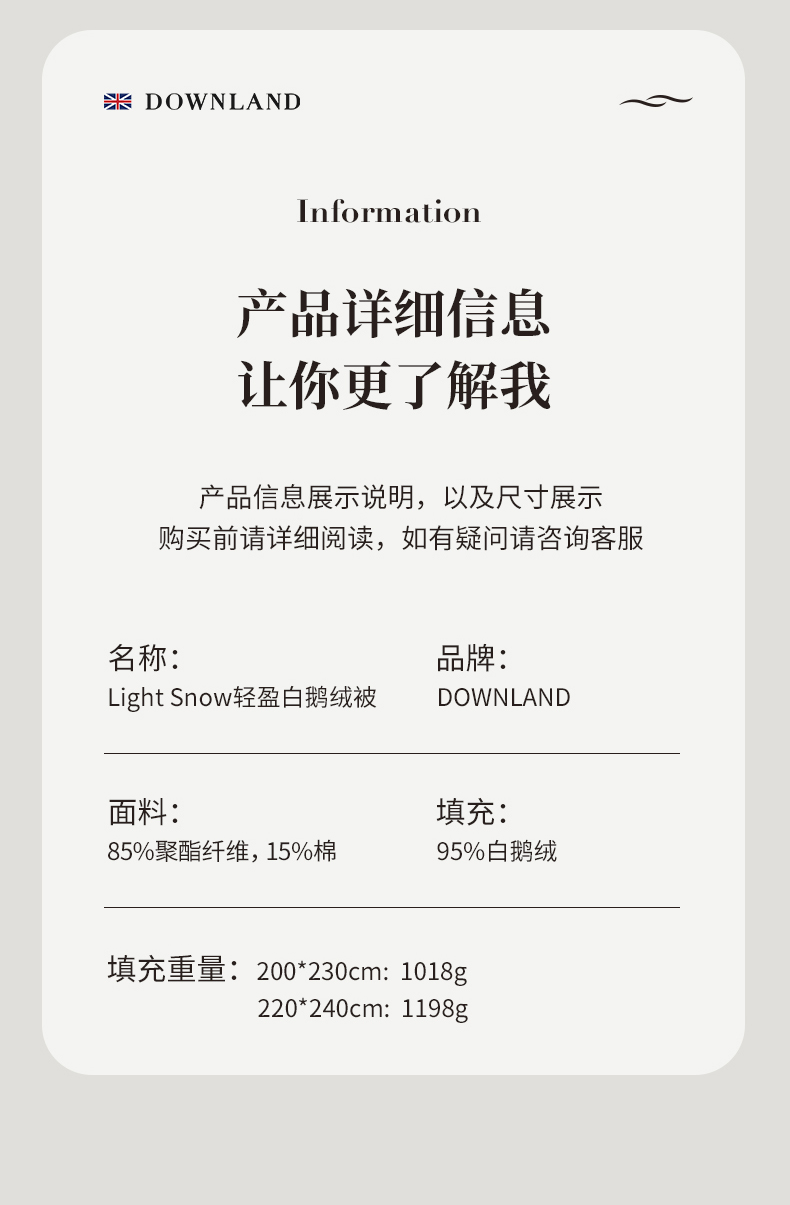 英国Downland轻盈白鹅绒被秋冬羽绒被子
