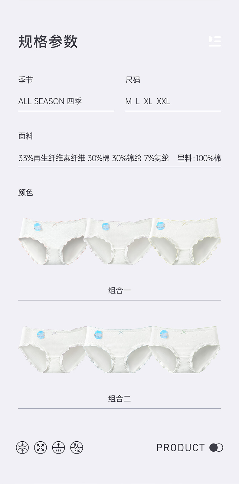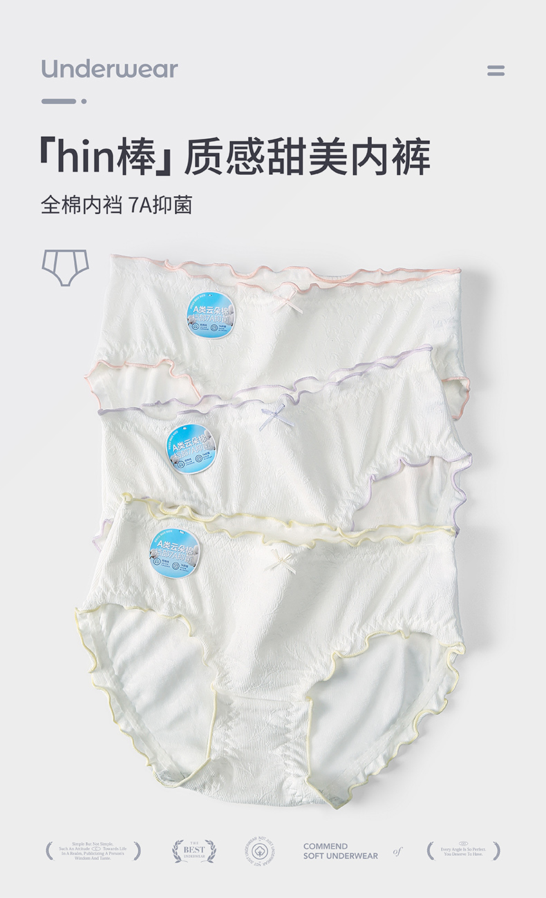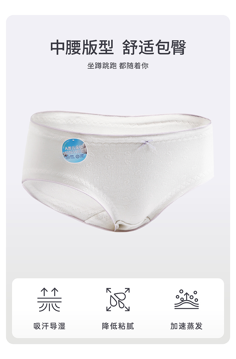 【3条装】A类内裤女100%棉内裆 中腰舒适透气无痕纯色新款三角短裤 芬腾