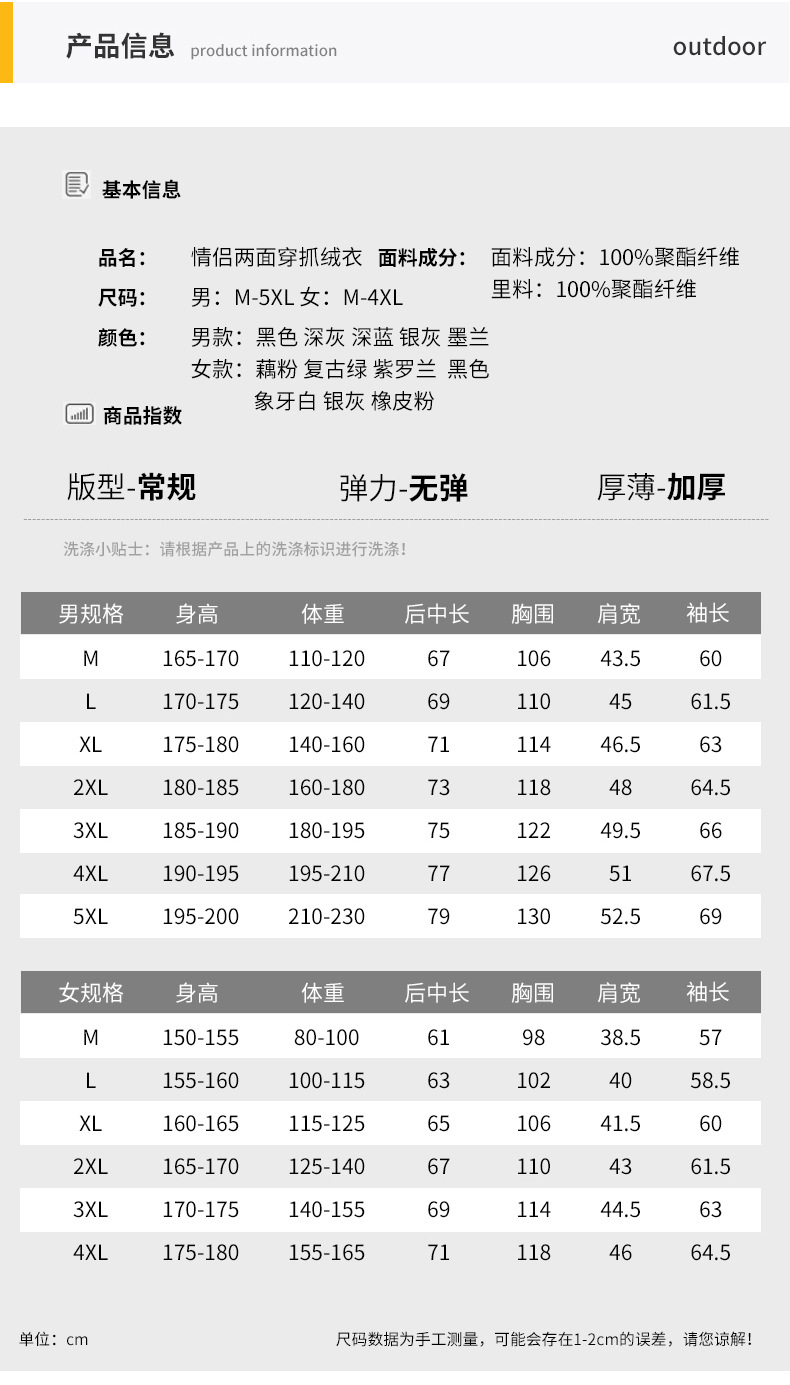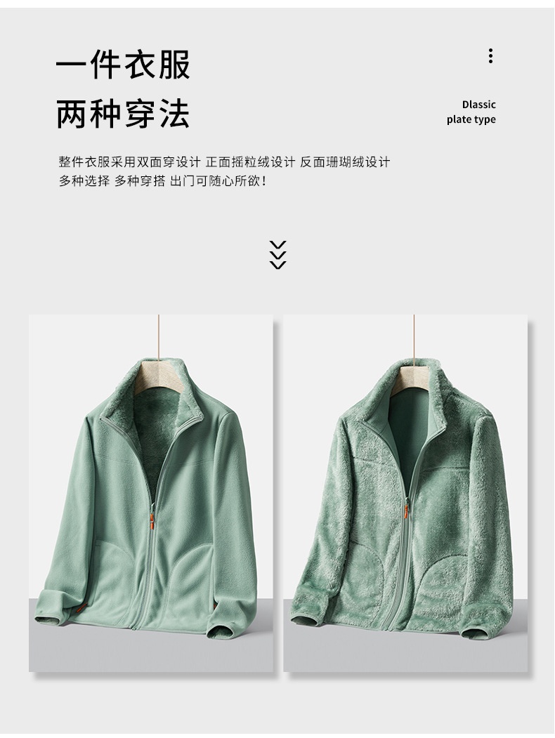 摇粒绒【情侣双面穿抓绒衣】秋冬季加厚开衫卫衣 冲锋衣内胆可外穿 正反两穿