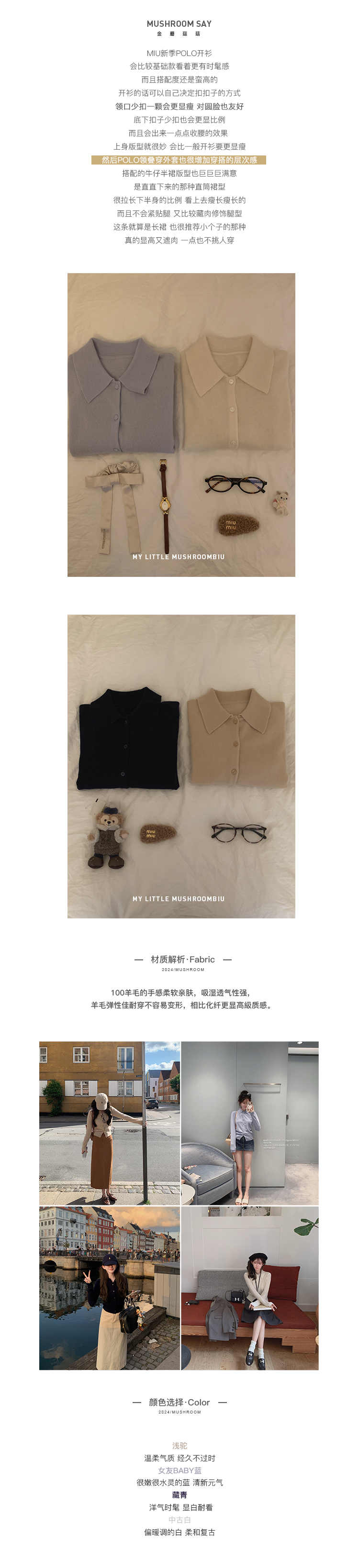 金蘑菇菇 丹麦假期 阿miu polo开衫组 / 100羊毛早秋时髦知识分子