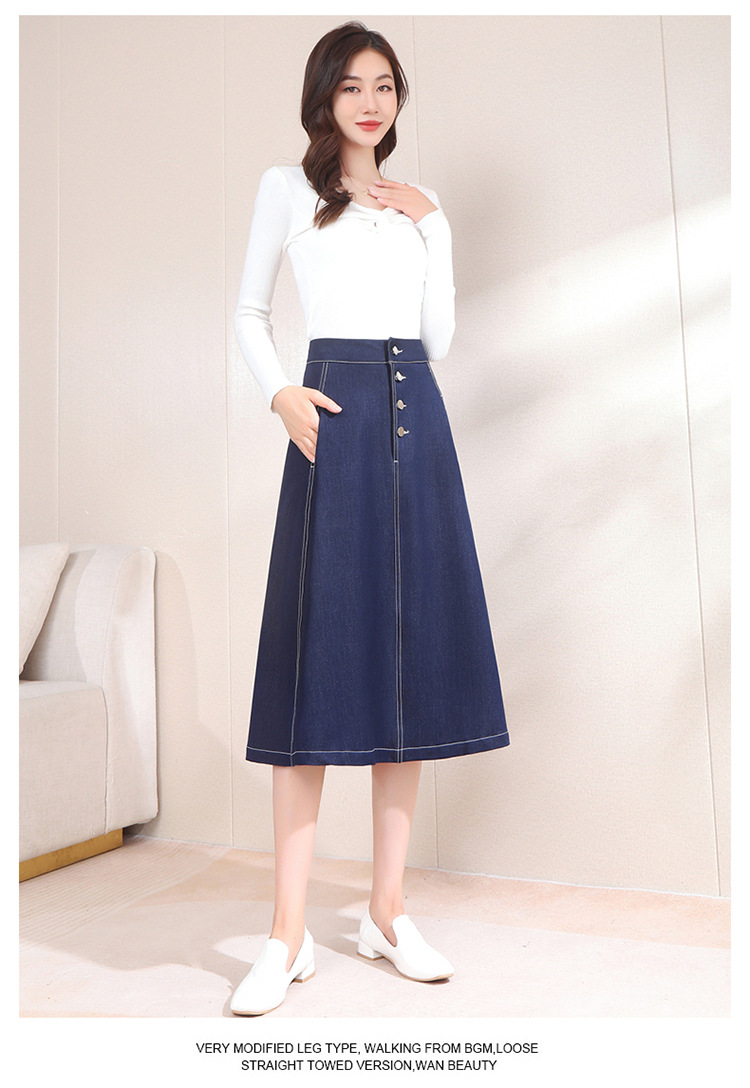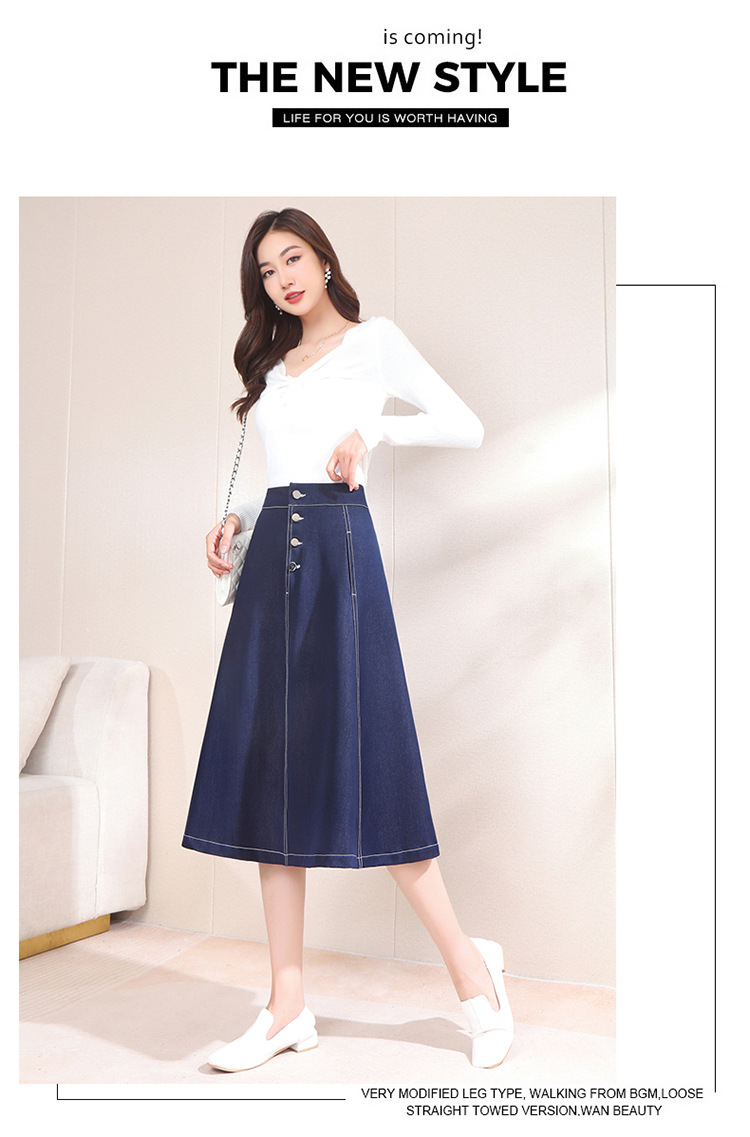 2022秋季新款半身裙时尚高腰A字裙长款大摆裙牛仔裙TY-A109