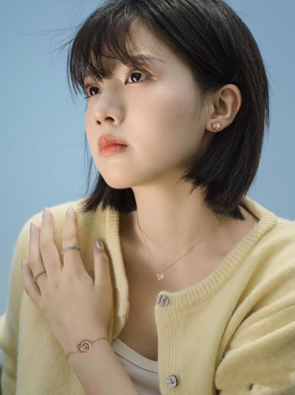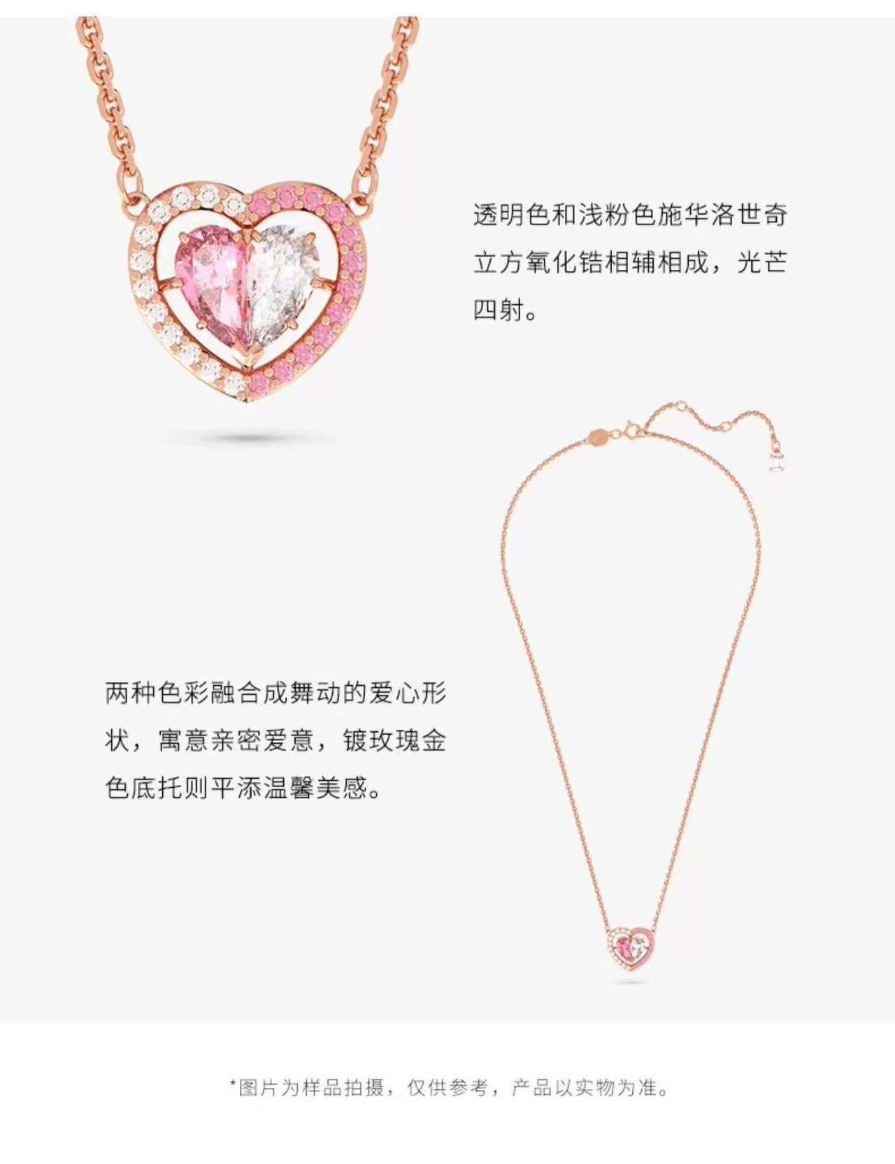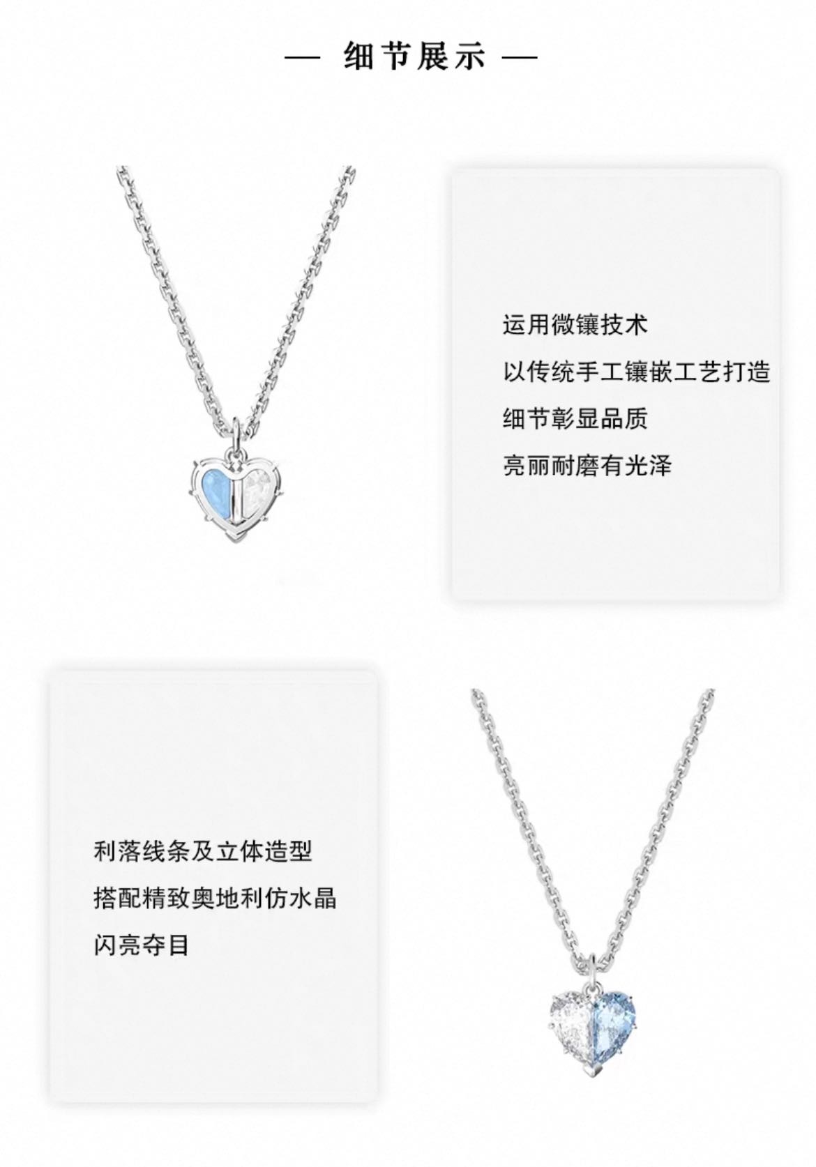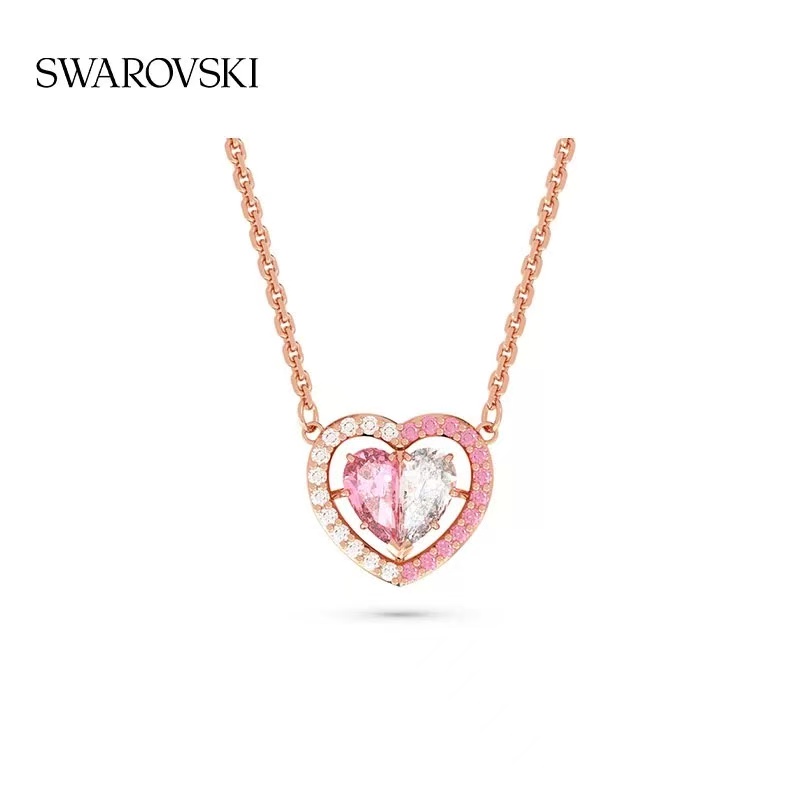 心选丨施华洛世奇 GEMA半心贴贴项链耳钉套装女士项链女生日礼物女5653009