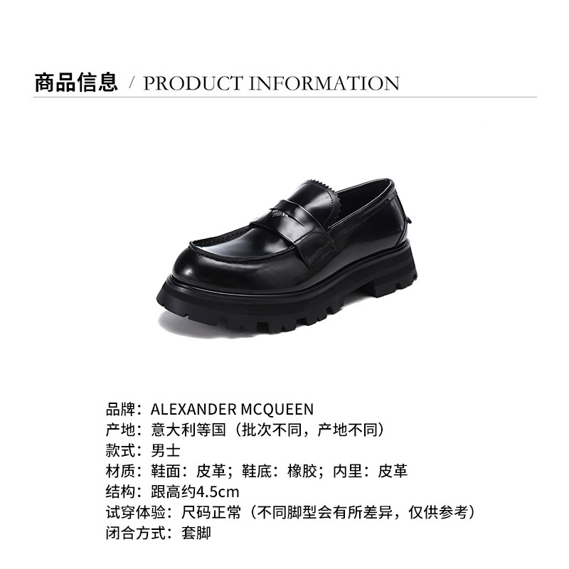 Alexander McQueen/亚历山大麦昆【22春夏新款】男士皮革徽标装饰厚底乐福鞋皮鞋 683571 WHZ85