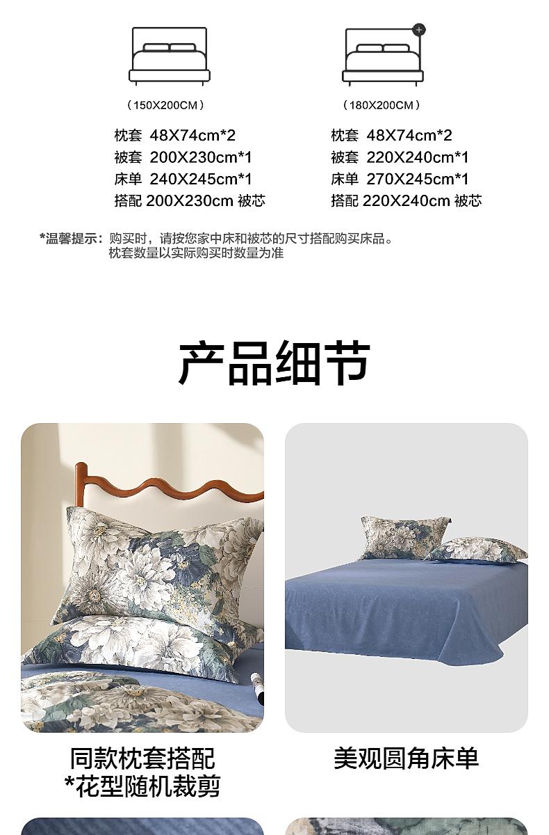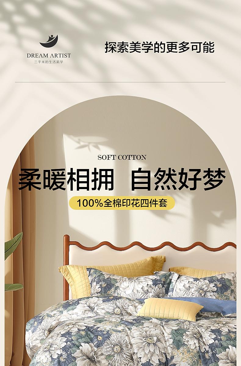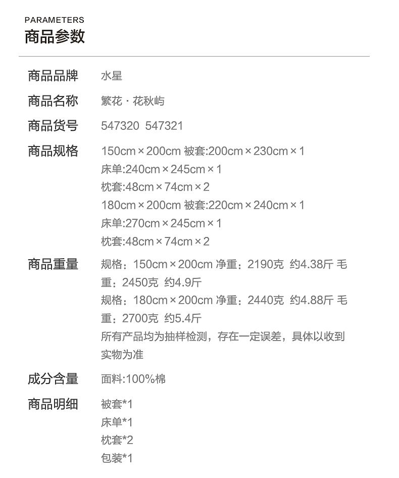 水星家纺全棉亲肤柔软透气四件套繁花·花琉影/繁花花秋屿床上用品