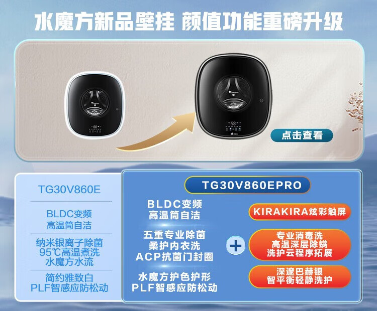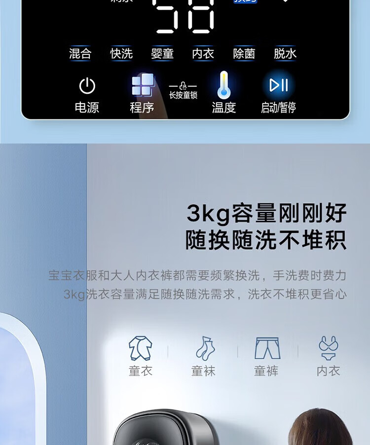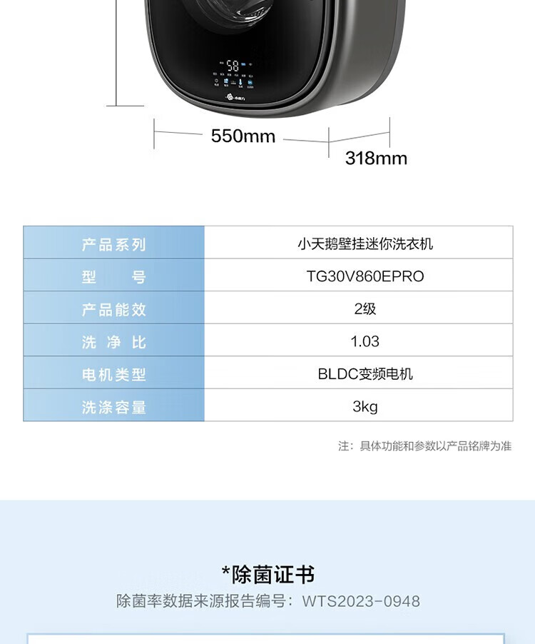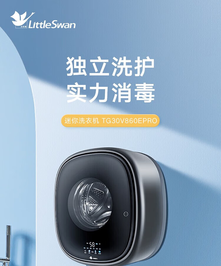 小天鹅(LittleSwan)壁挂洗衣机TG30V860EPRO 小海绵 3KG迷你滚筒洗衣机全自动 儿童婴儿洗衣机小型 挂壁式 水魔方