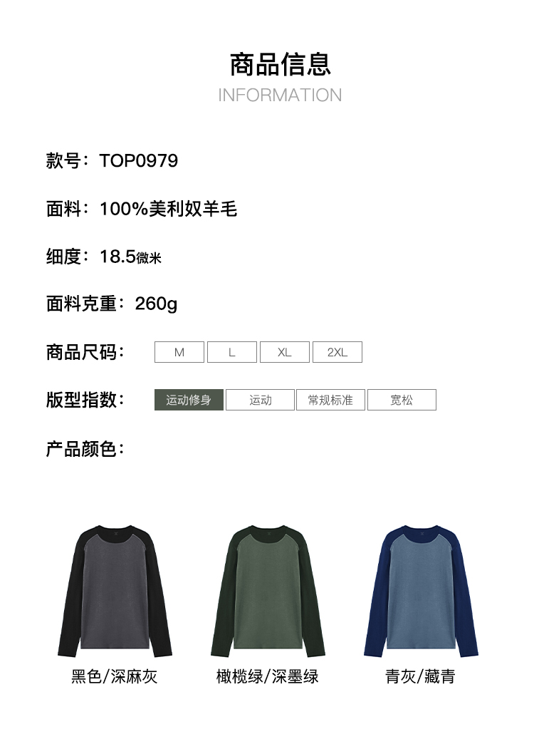 IGUANA 260G可机洗美利奴羊毛秋冬拼色女款 男款 T恤