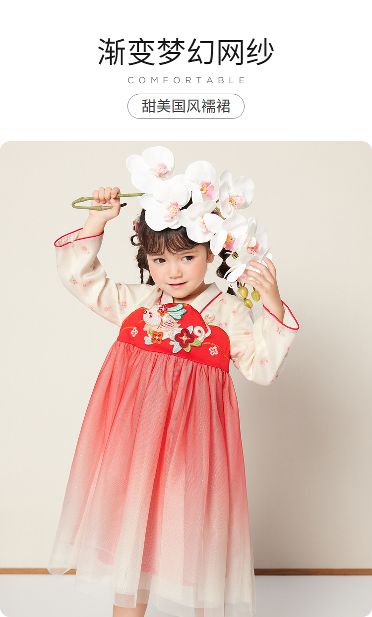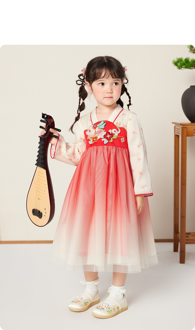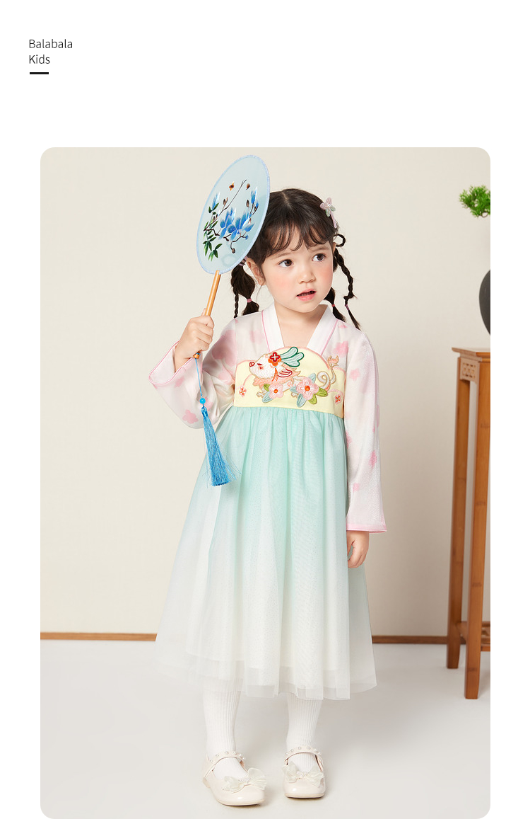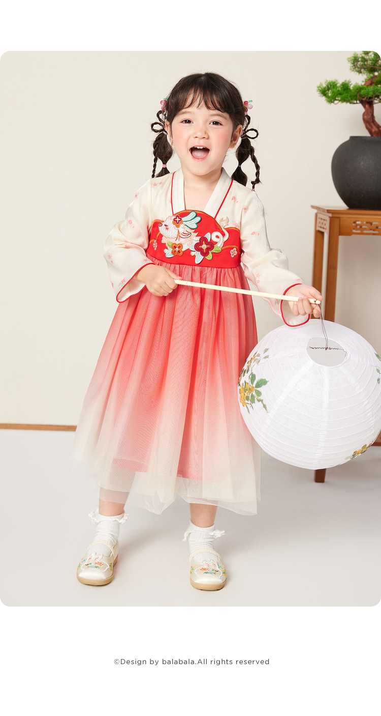 巴拉巴拉女童汉服国风连衣裙新款童装儿童春装洋气小童裙子潮