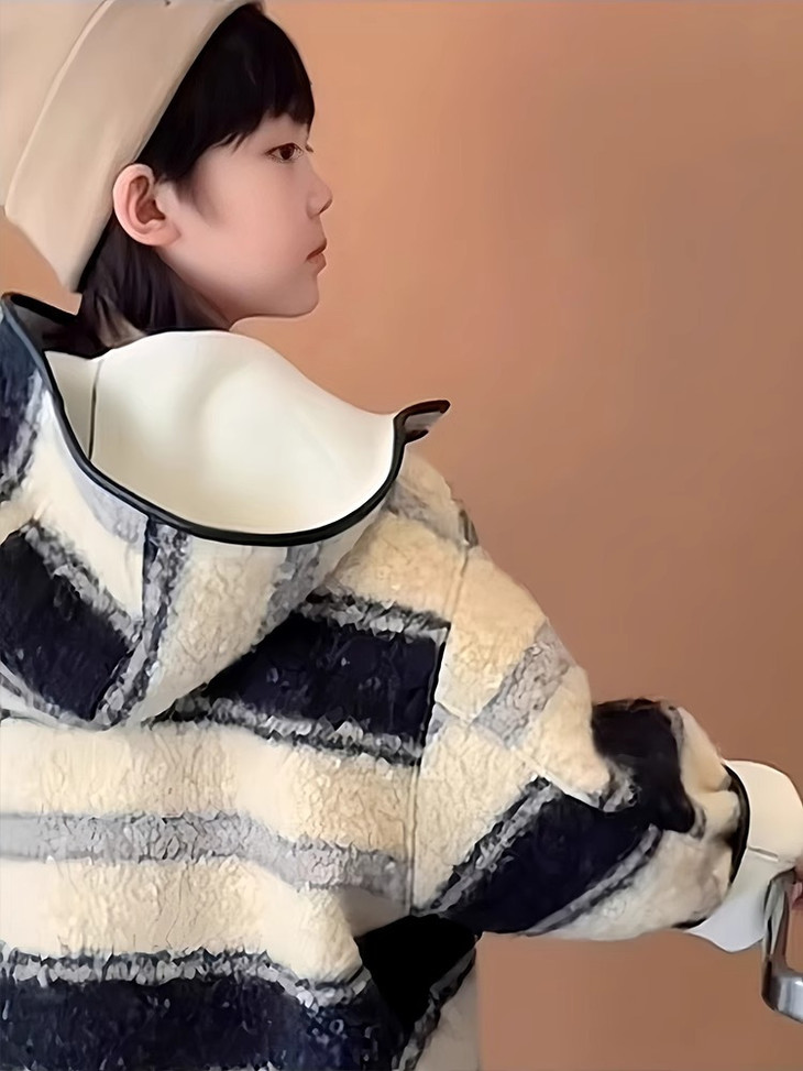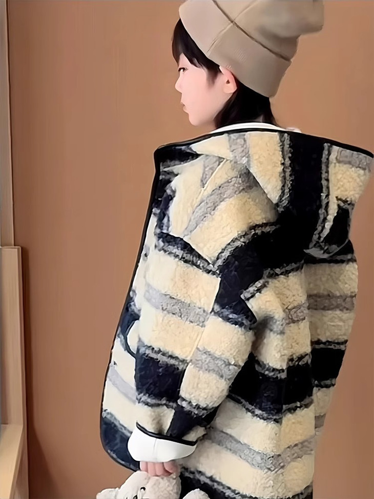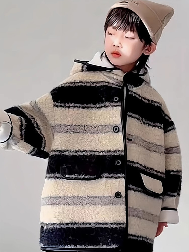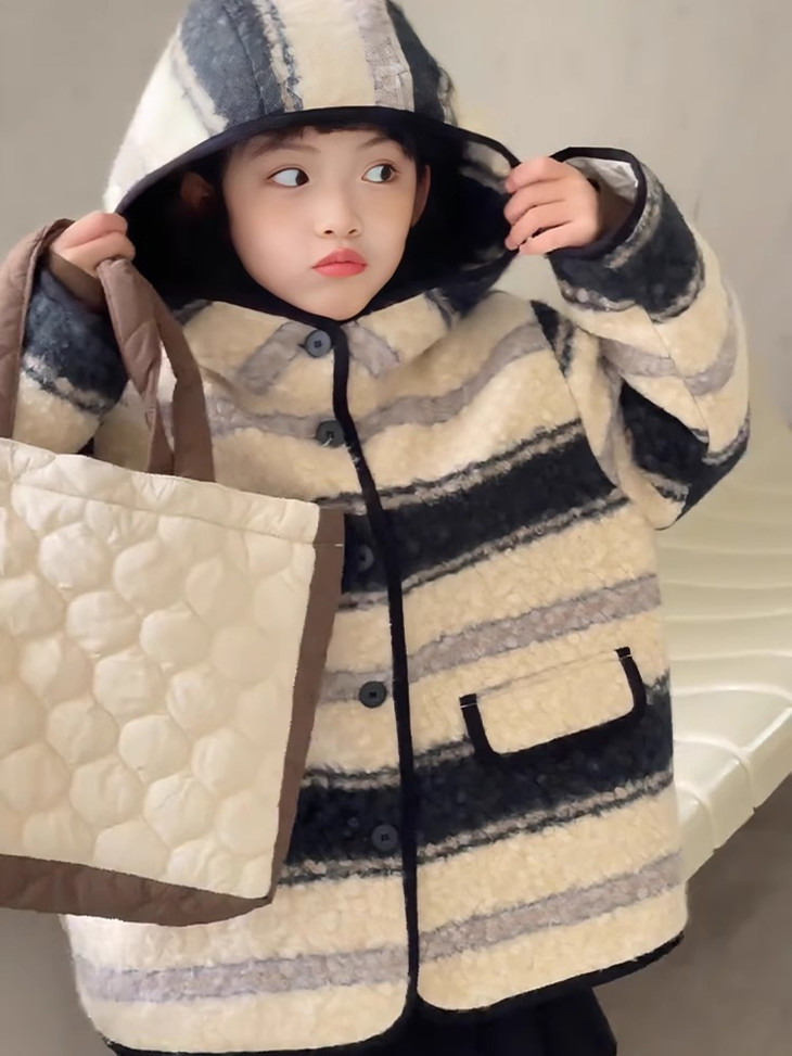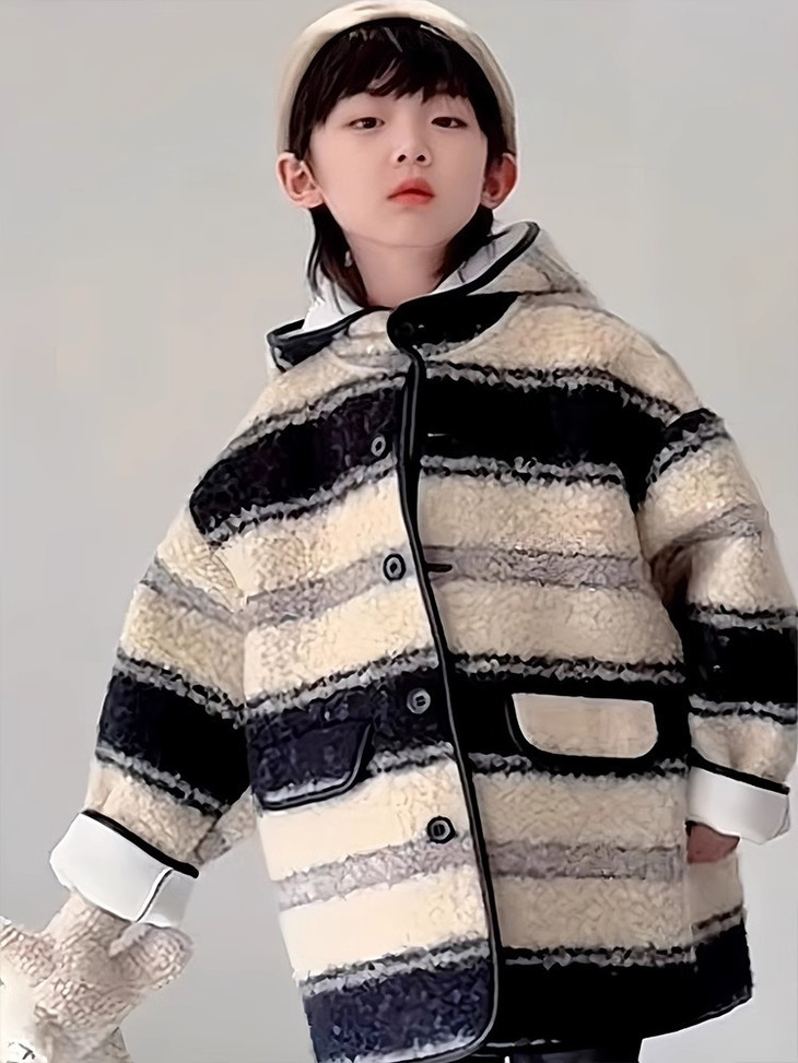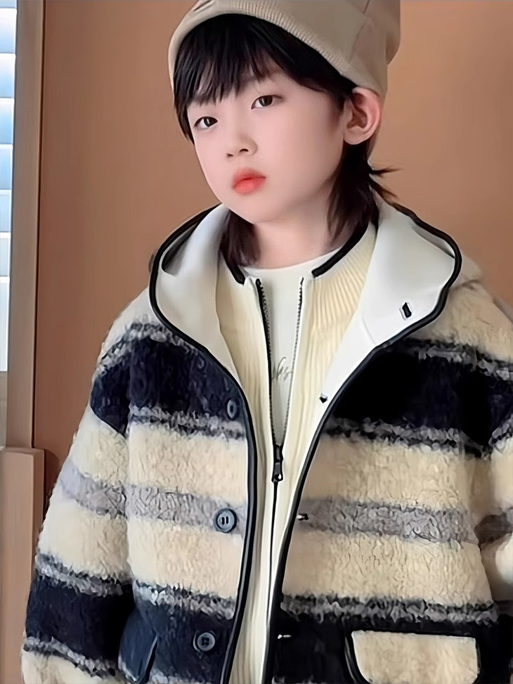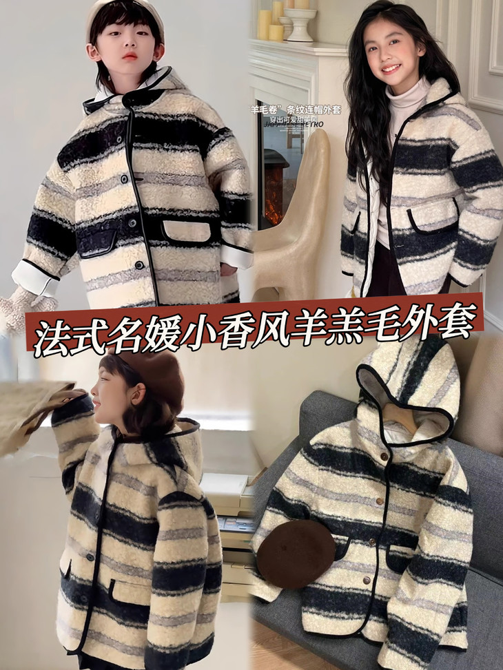 【吉米故事中大童条纹呢子大衣】❗️火出天际的🔥夹棉条纹羊羔毛😘冬天真的拒绝不了❌这种毛茸茸的氛围感❗️ *❄冬日里的小暖炉,看着就好暖和🔥