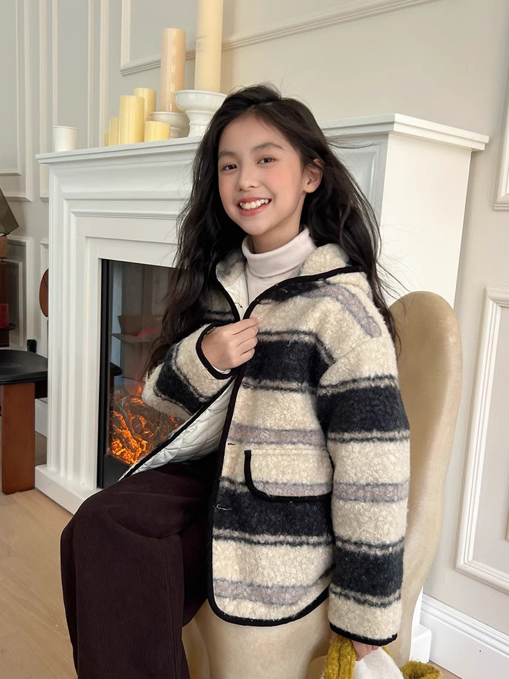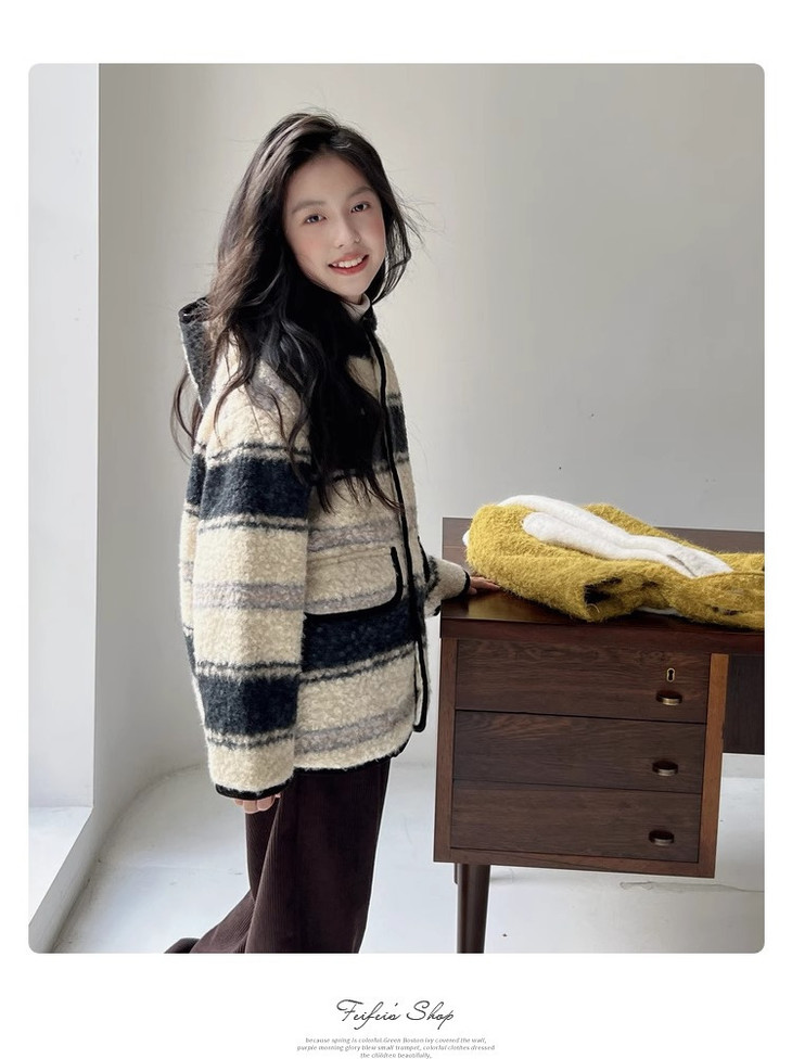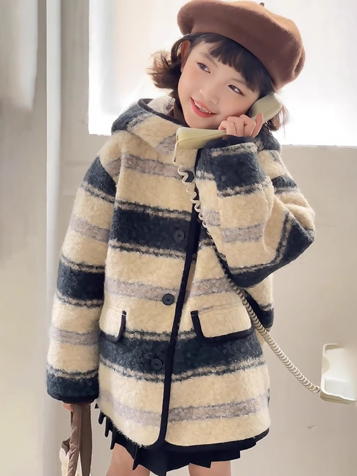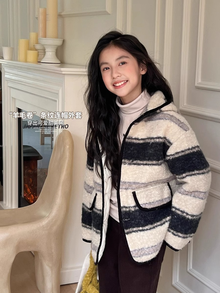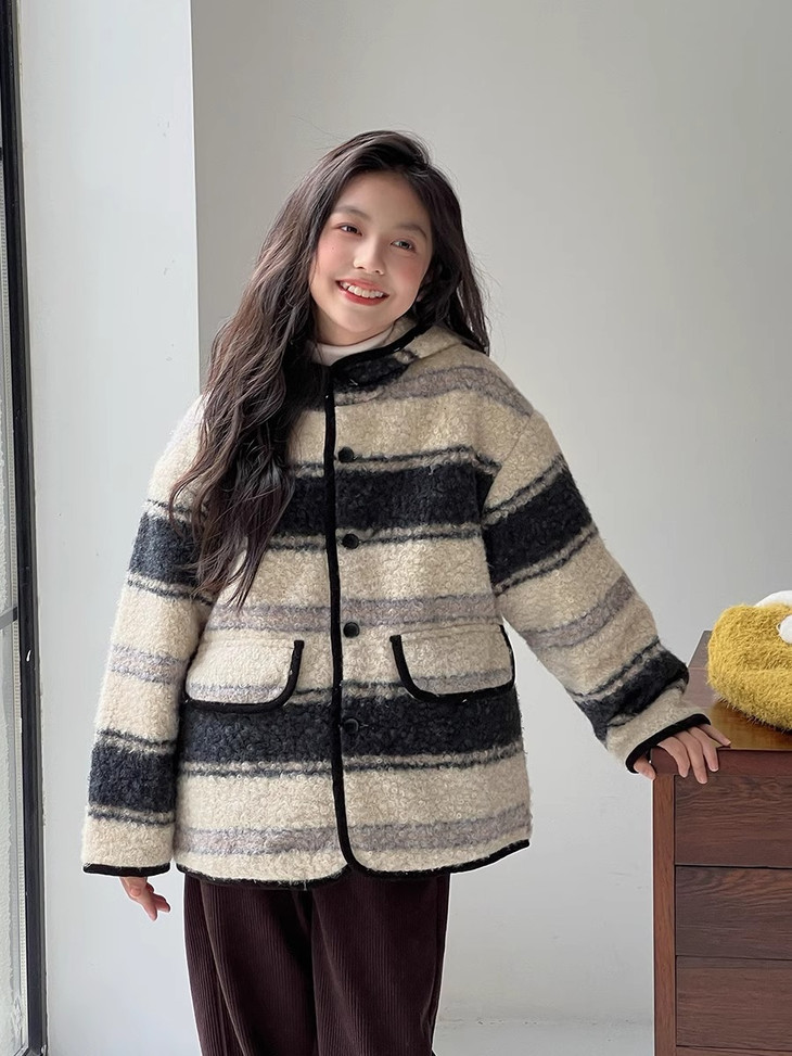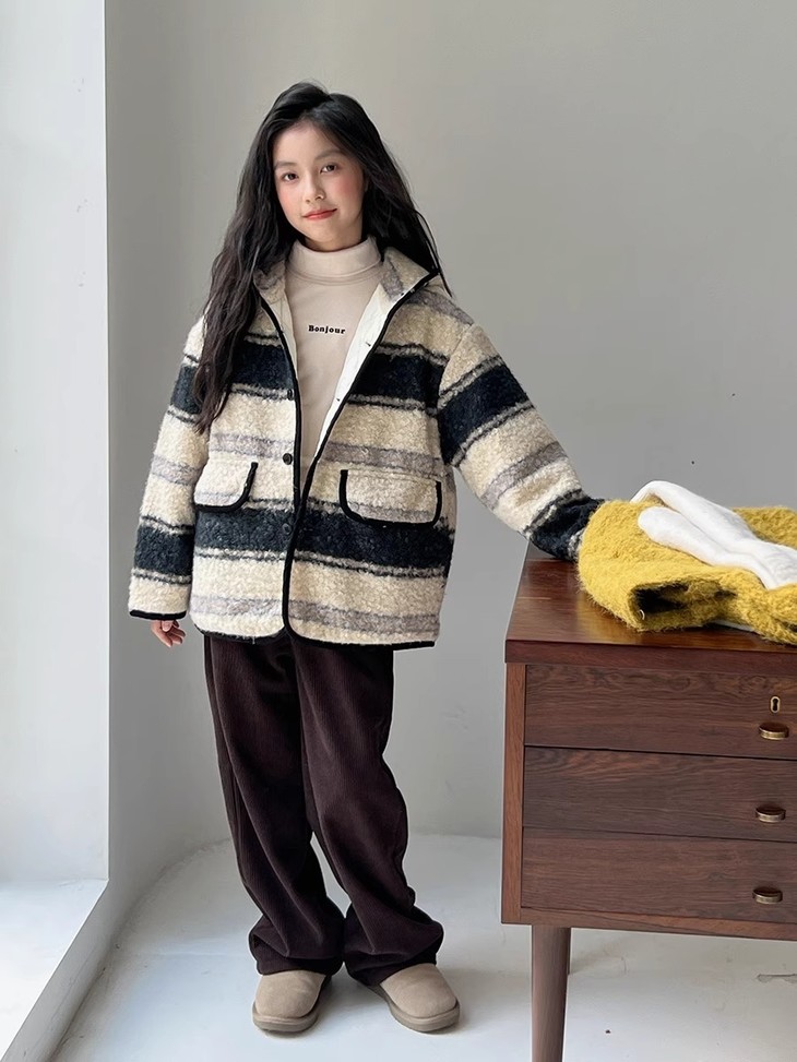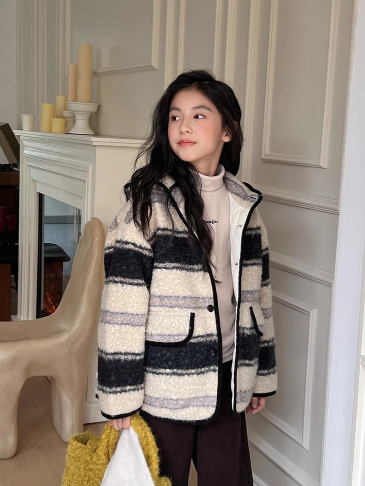 【吉米故事中大童条纹呢子大衣】❗️火出天际的🔥夹棉条纹羊羔毛😘冬天真的拒绝不了❌这种毛茸茸的氛围感❗️ *❄冬日里的小暖炉,看着就好暖和🔥