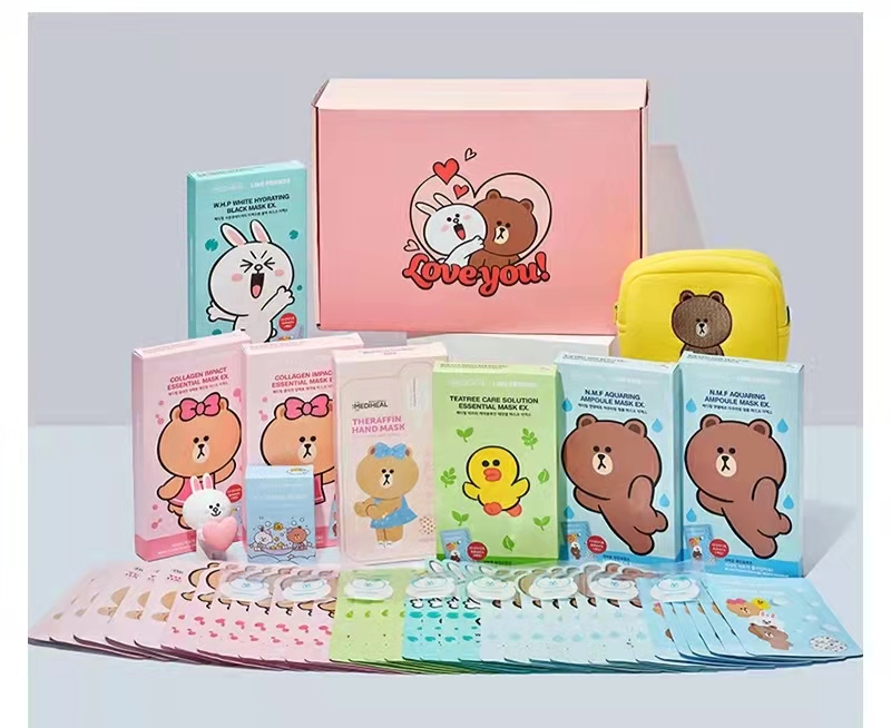 【YZ】MEDIHEAL/美迪惠尔 面膜10盒+保湿增效面膜布10片洗手皂片+化妆包line恋朋保湿面膜礼盒套装