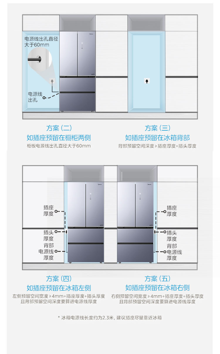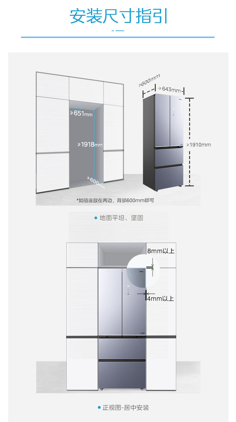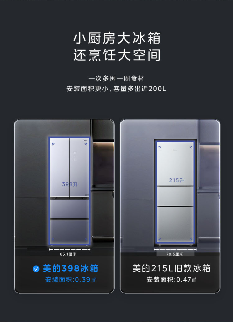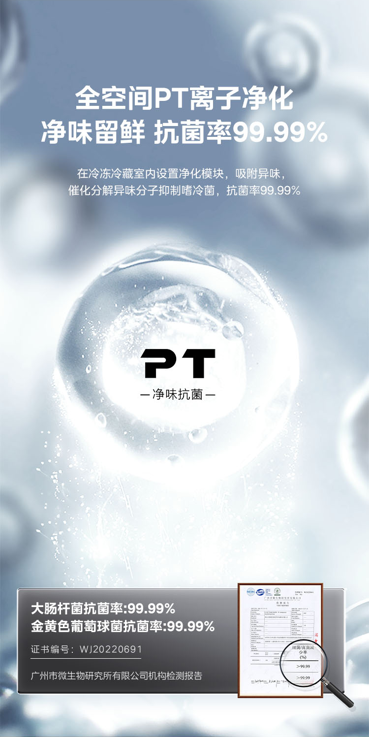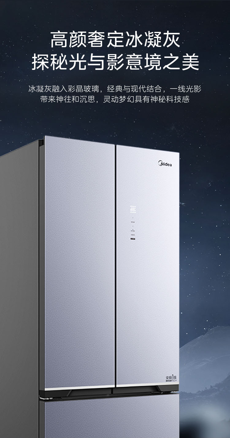 美的冰箱BCD-398WUFGPM冰凝灰 纯平全嵌,60CM超薄整机;全空间PT离子净化,守护食材新鲜;三档变温空间,提供多种分储;