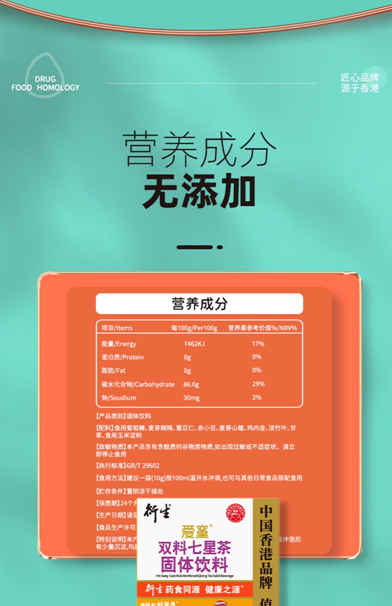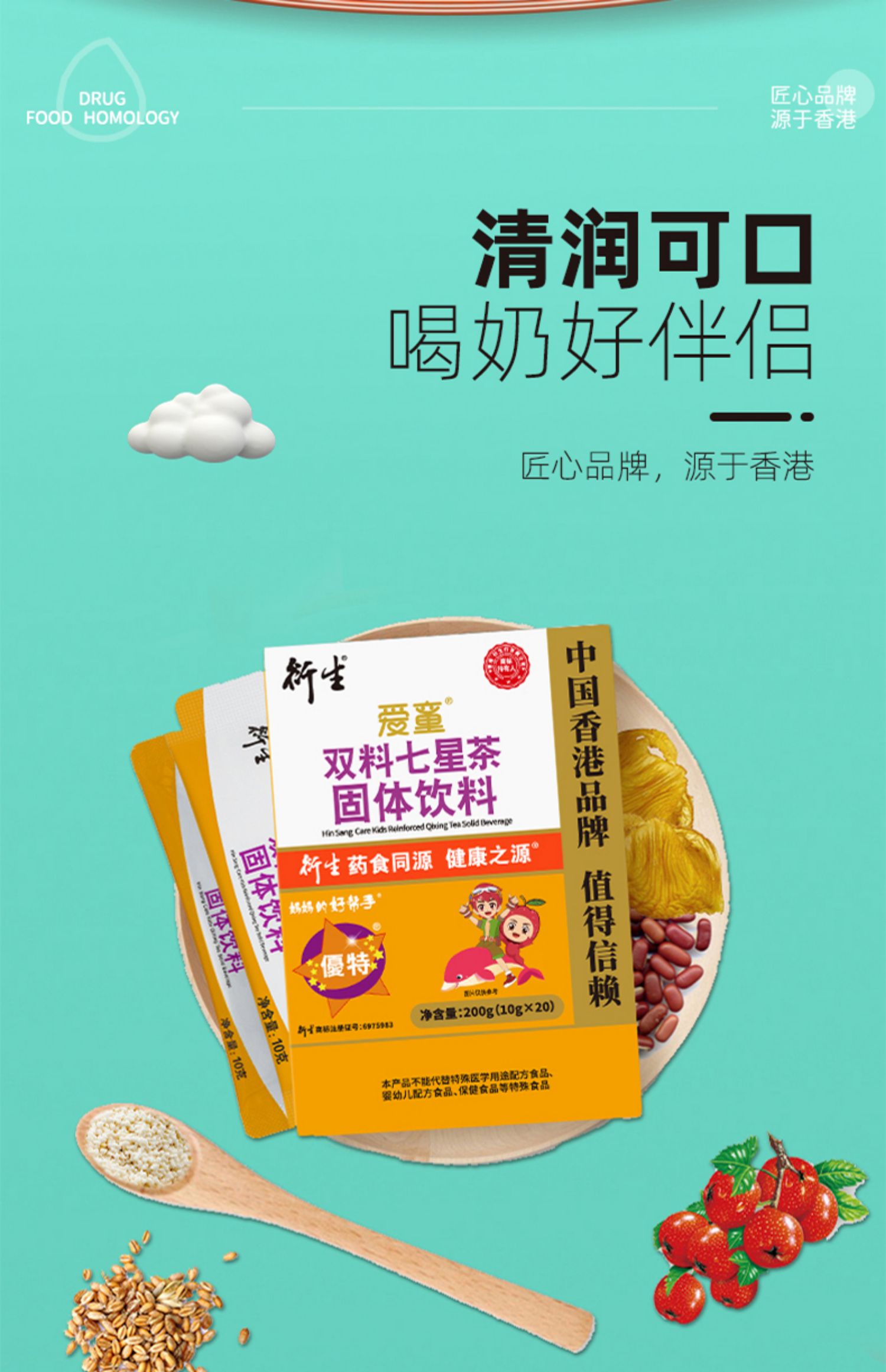 衍生 爱童双料七星茶固体饮料10克/包*20包/盒