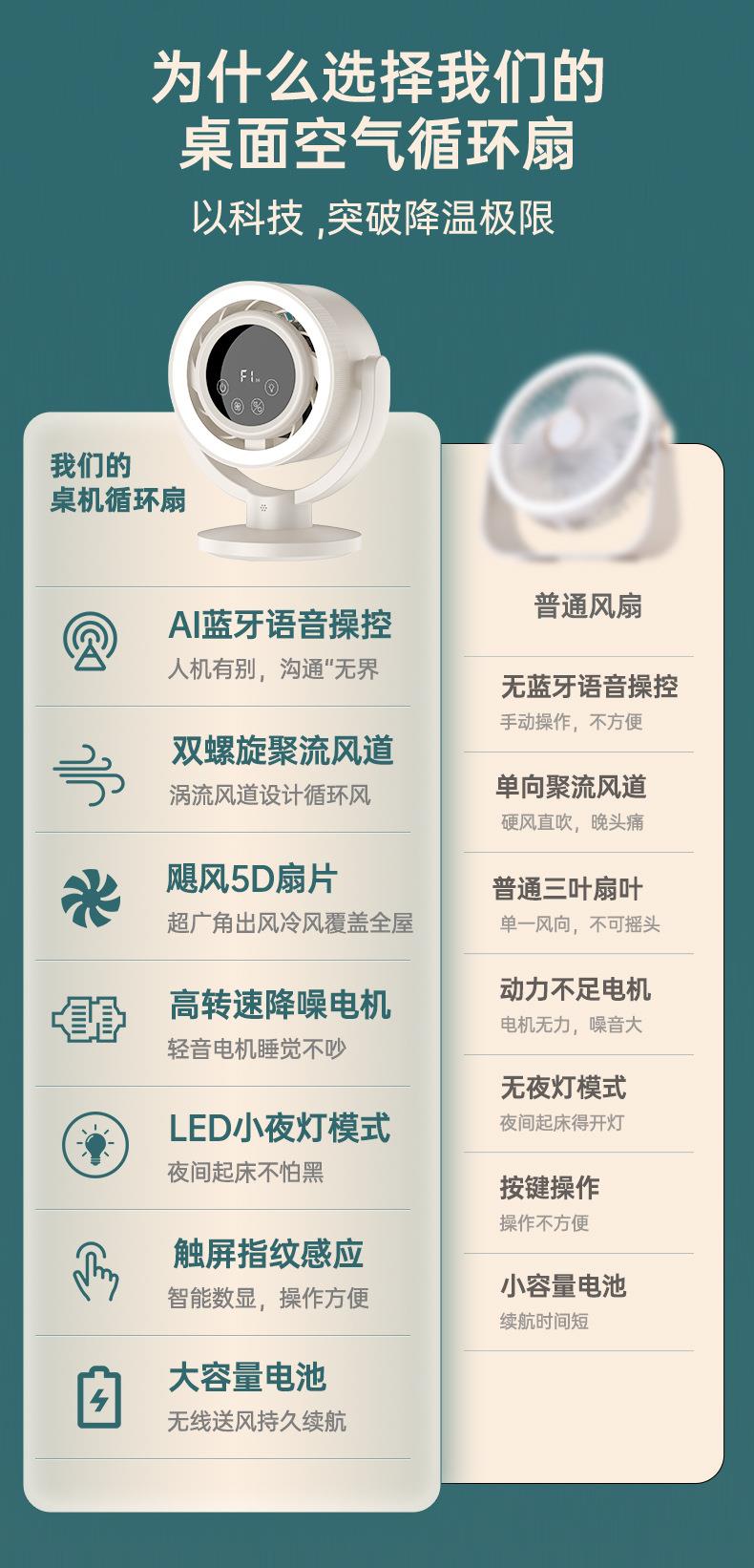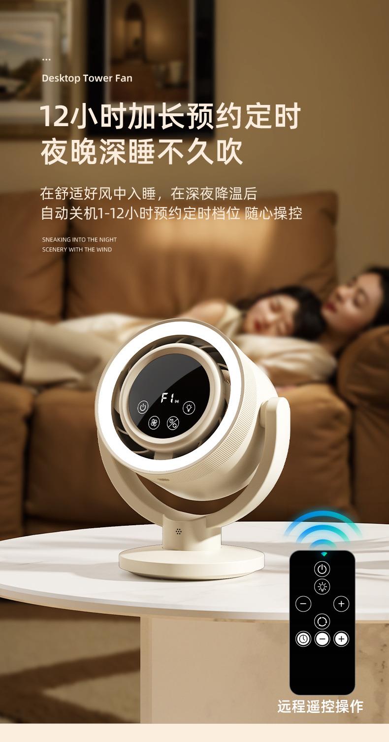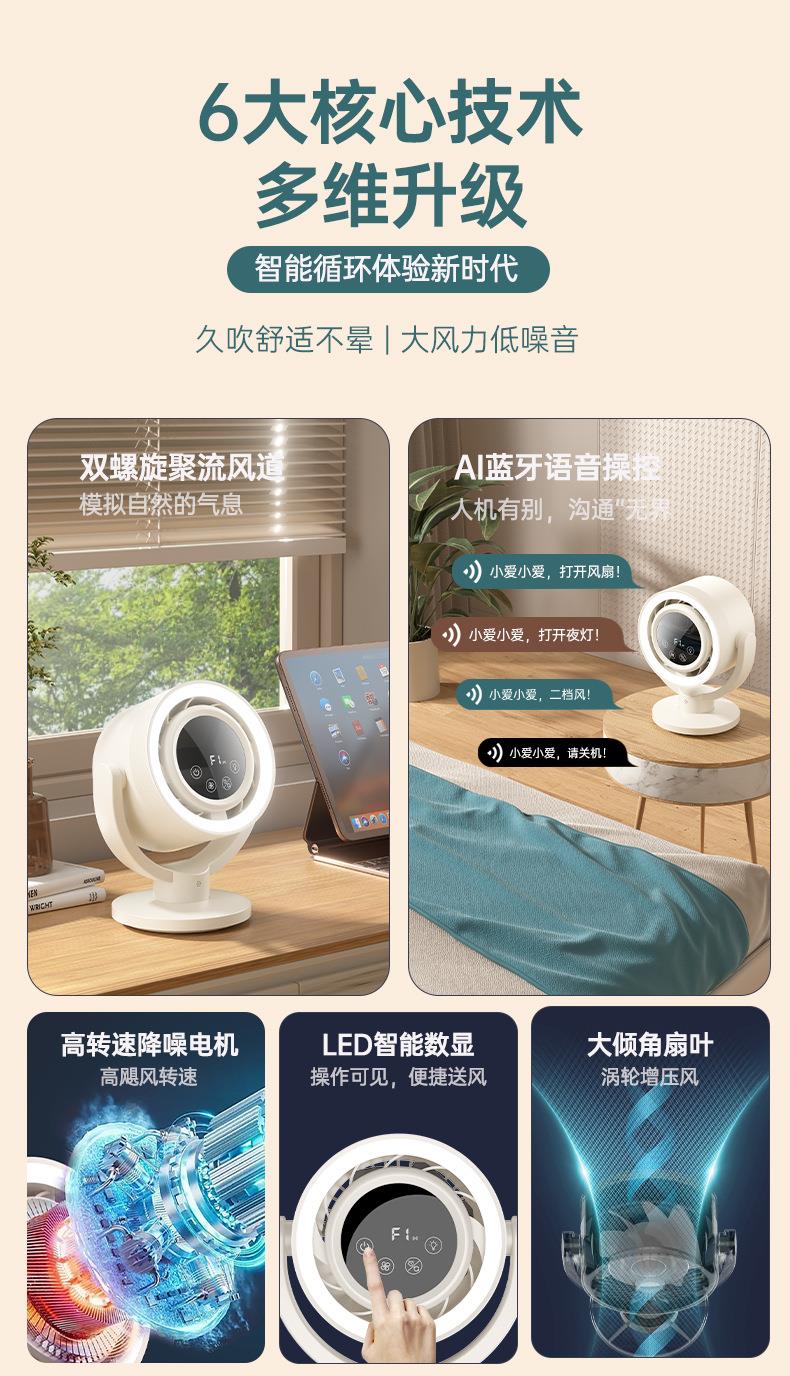 新款多功能高速循环扇语音蓝牙遥控可定时可摇头桌面灯光挂壁风扇