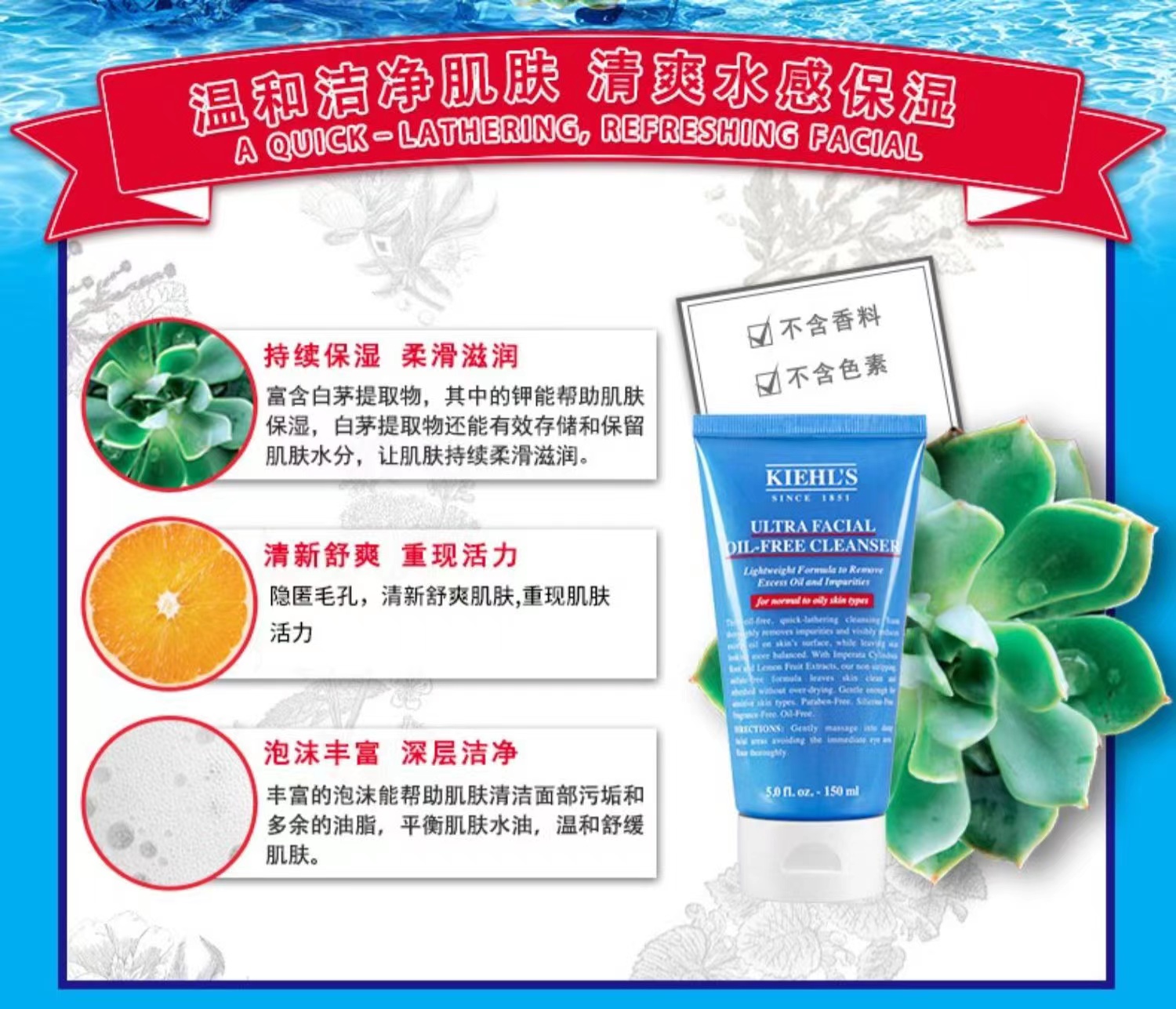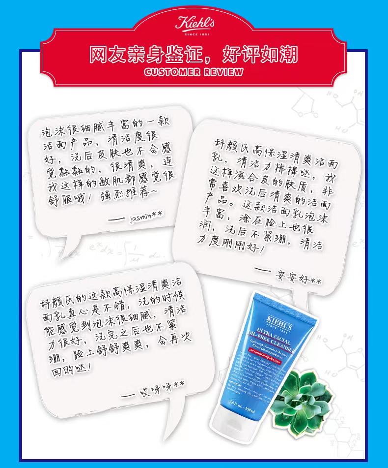 【科颜氏】B1FKiehls科颜氏高保湿清爽洁面乳150ml清爽不紧绷