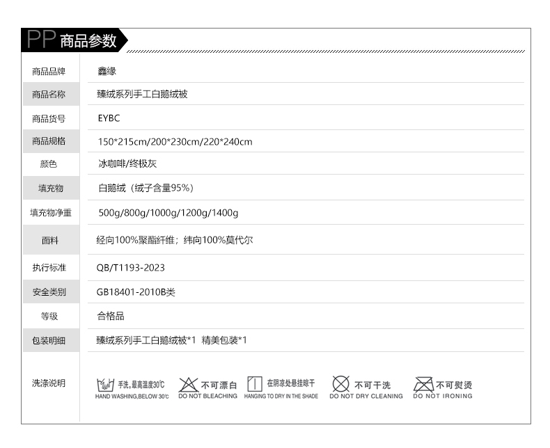 鑫缘 臻绒系列手工白鹅绒被 EYBC