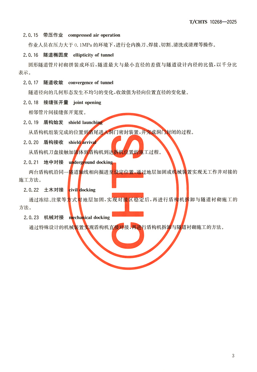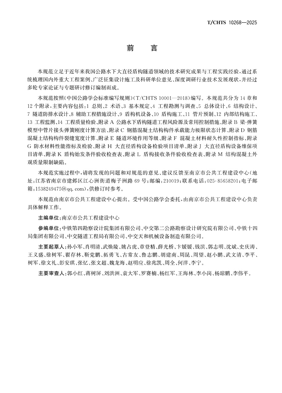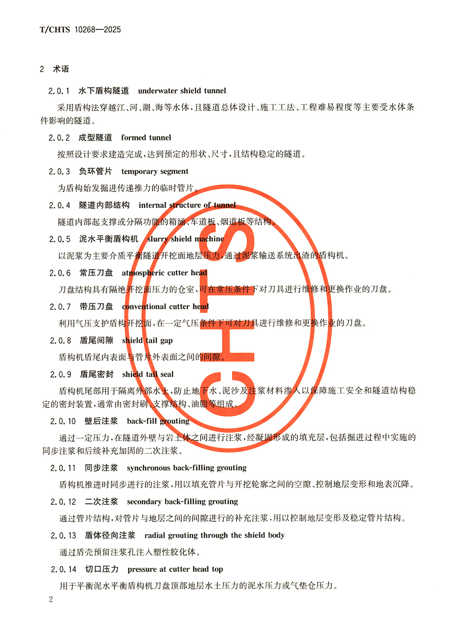 公路水下大直径盾构隧道技术规范(T/CHTS 10268—2025)