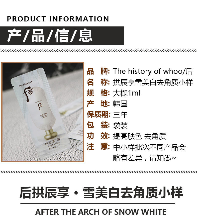 【爆款超低价预售 急单慎拍】韩国whoo后拱辰享雪美白去角质小样1ml啫喱去死皮膏美白清洁毛孔