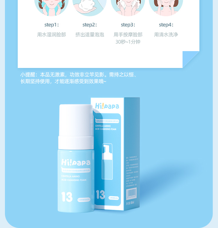 海龟爸爸儿童洗面奶3-12岁积雪草氨基酸洁颜泡泡洗面奶洁面乳(新老包装随即)