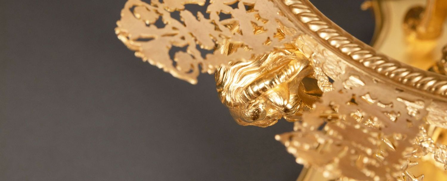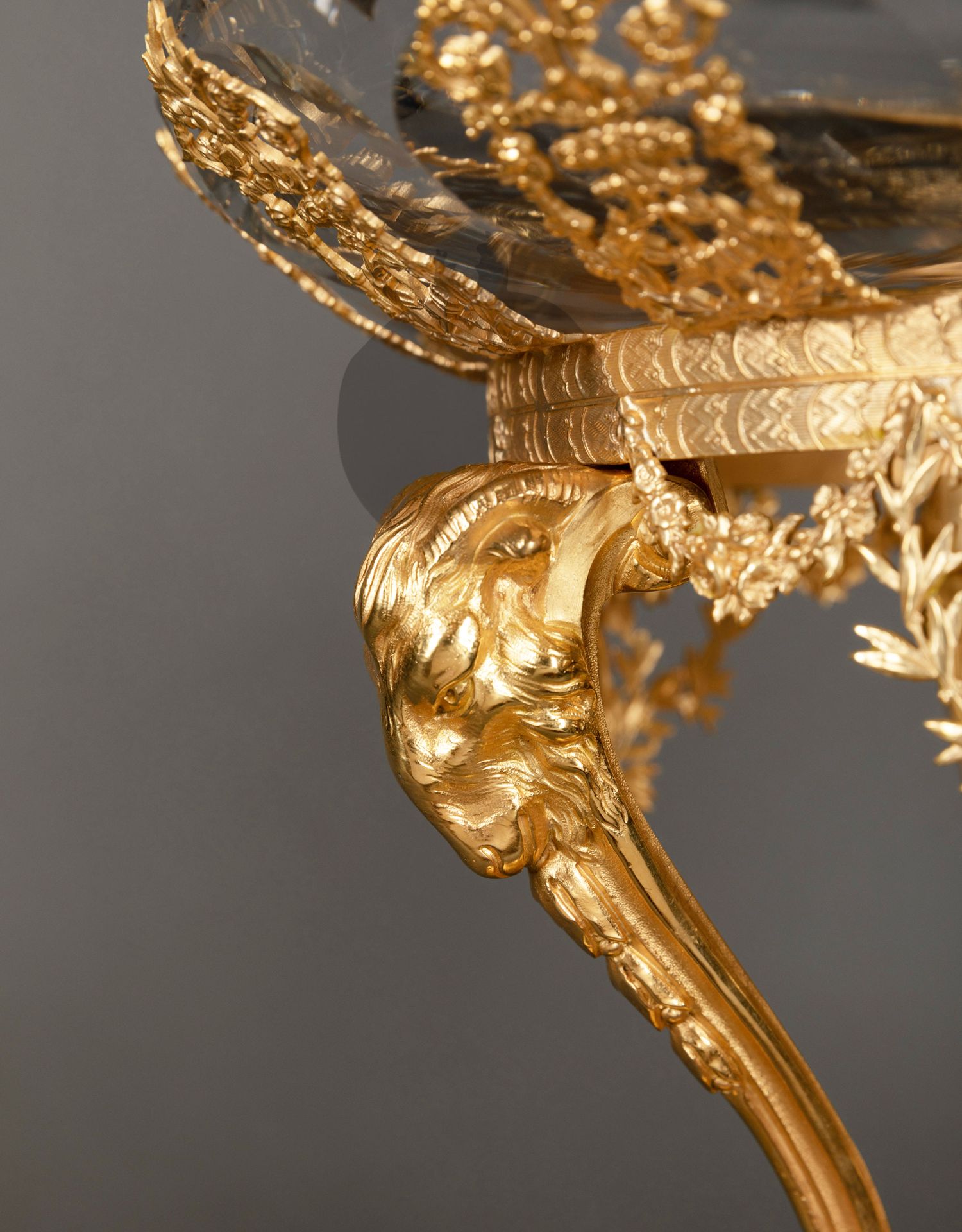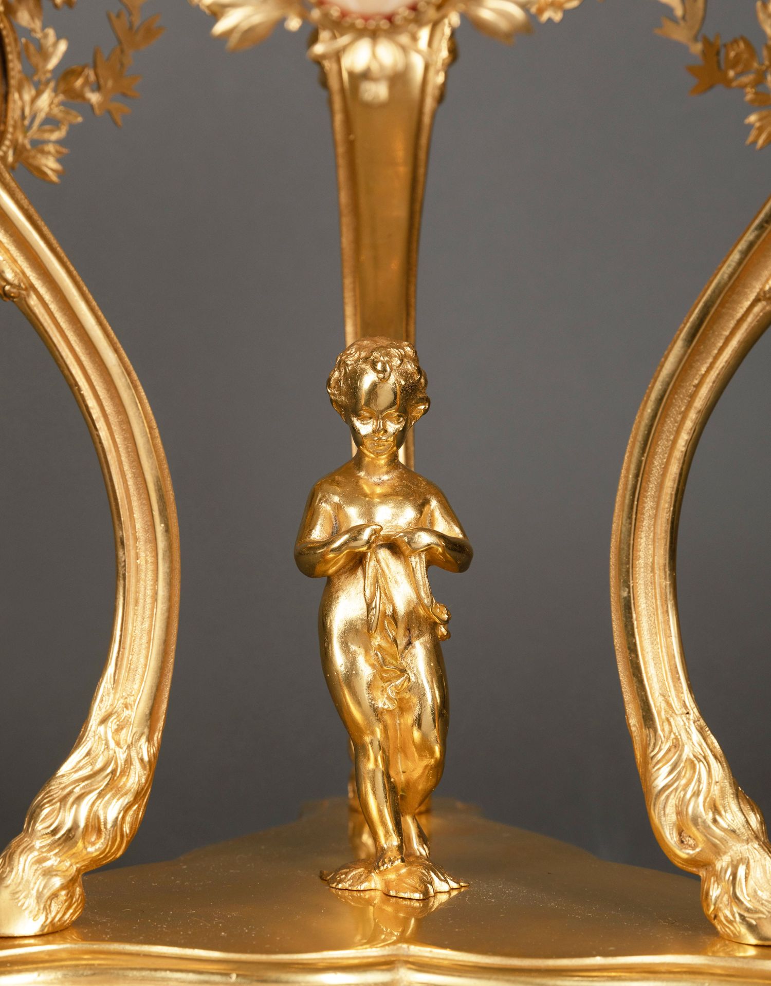 独角鹿西洋古董铜鎏金镶古典女子Cameo浮雕巴卡拉水晶高脚果樽