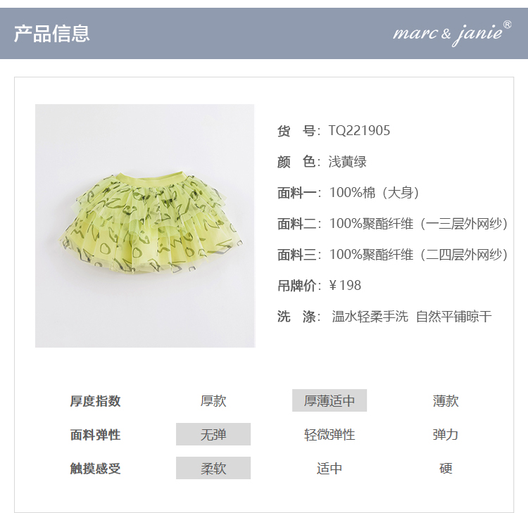 马克珍妮夏装 女童网纱蛋糕裙半身裙 儿童短裙221905