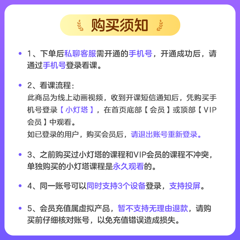【收货人手机号即为会员充值账号】【小灯塔VIP会员年卡】3-12岁英语思维百科益智启蒙动画