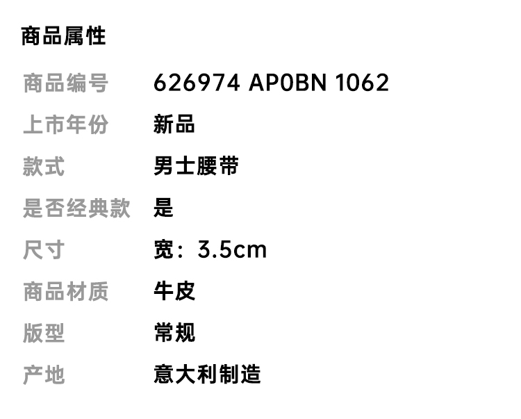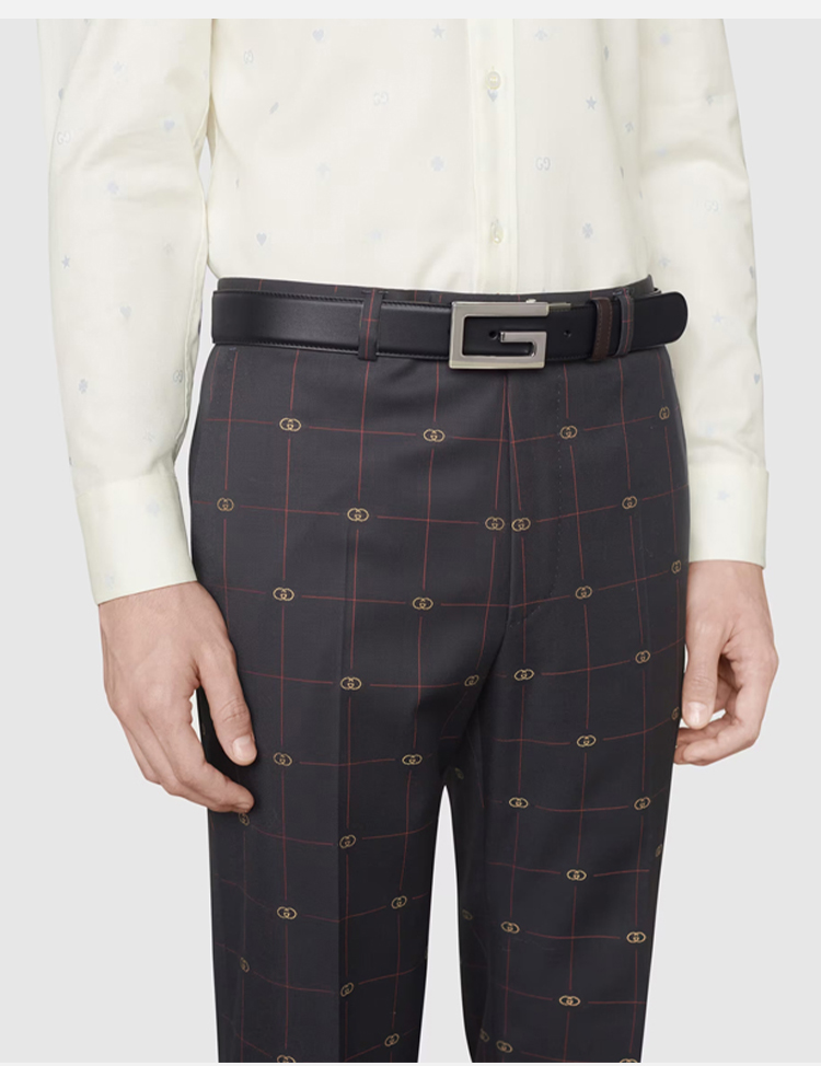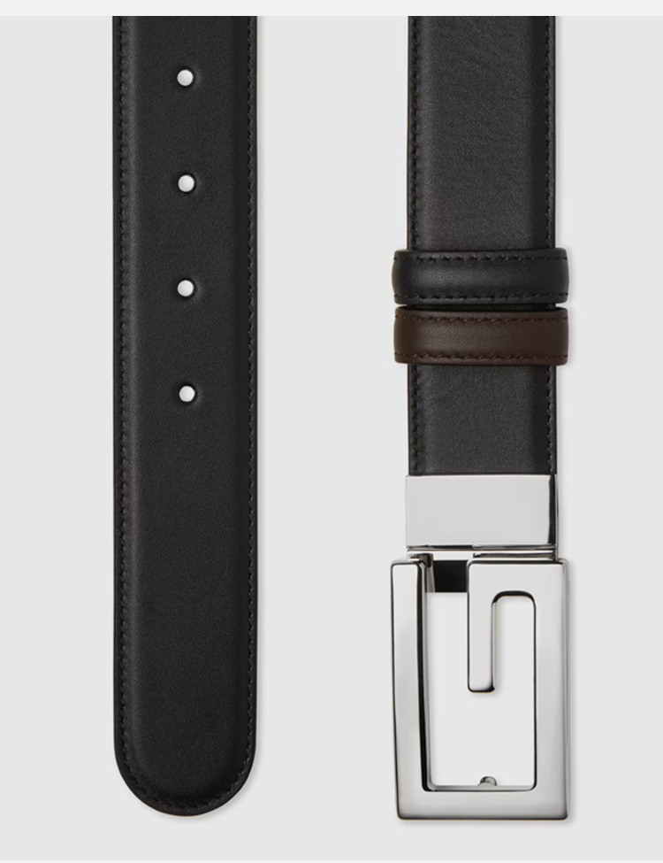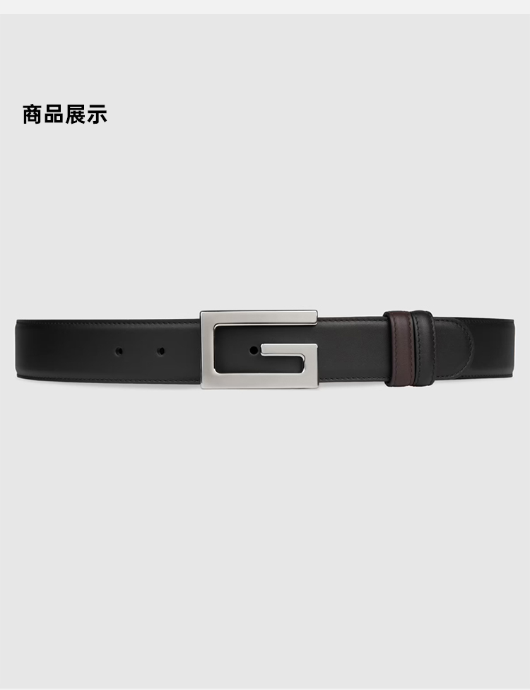 GUCCI 古驰 男士方形G搭扣双面皮革腰带 黑色 626974 AP0BN 1062